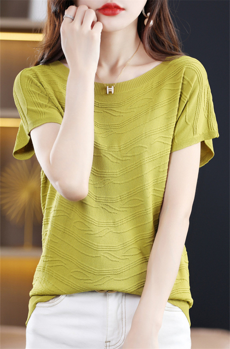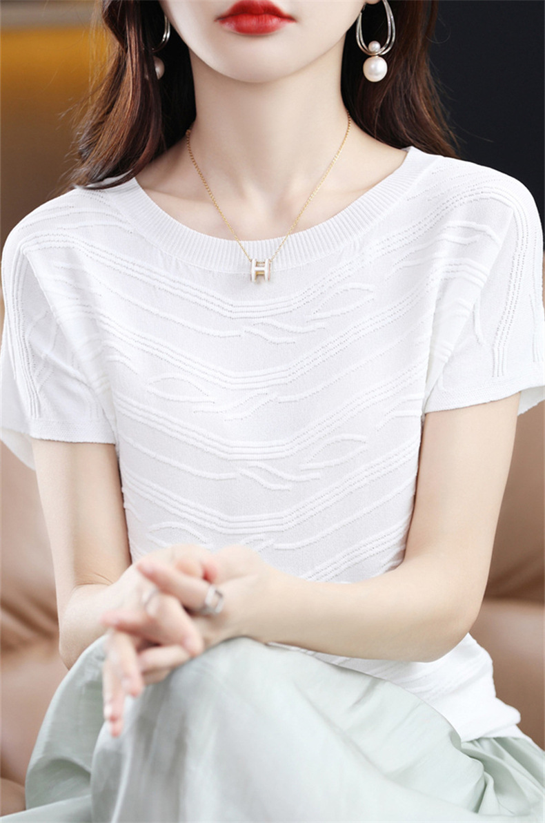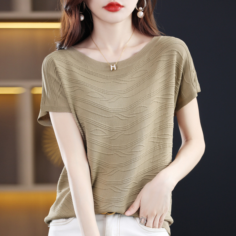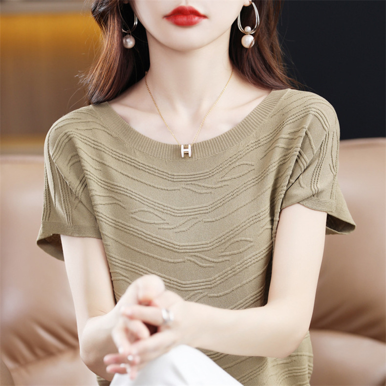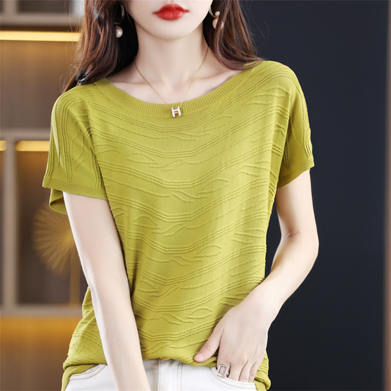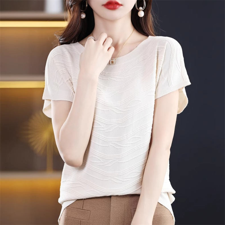아이스 실크 반팔 티셔츠 여성 여름 2024 새로운 여성 질감 니트 티셔츠 탑 얇은베이스 셔츠 도매