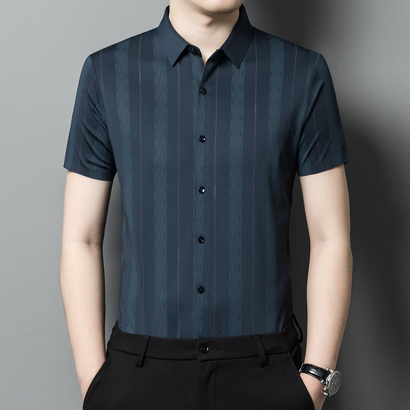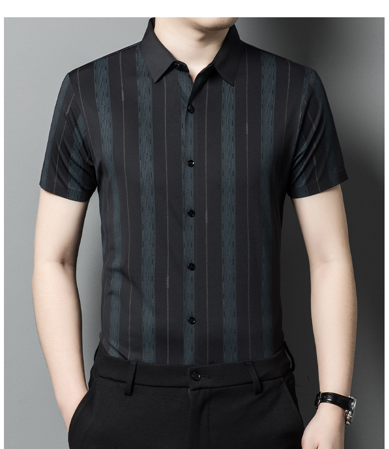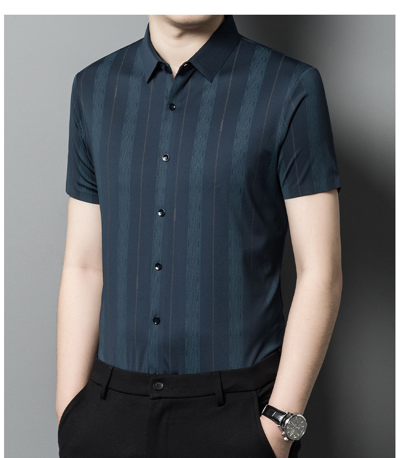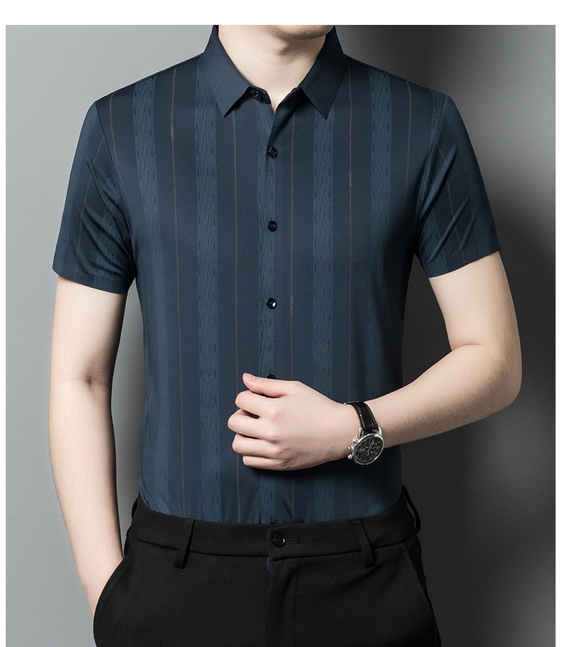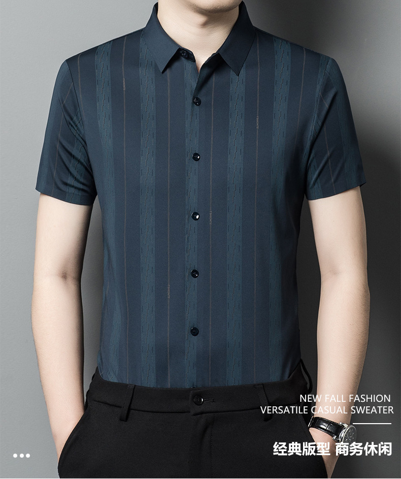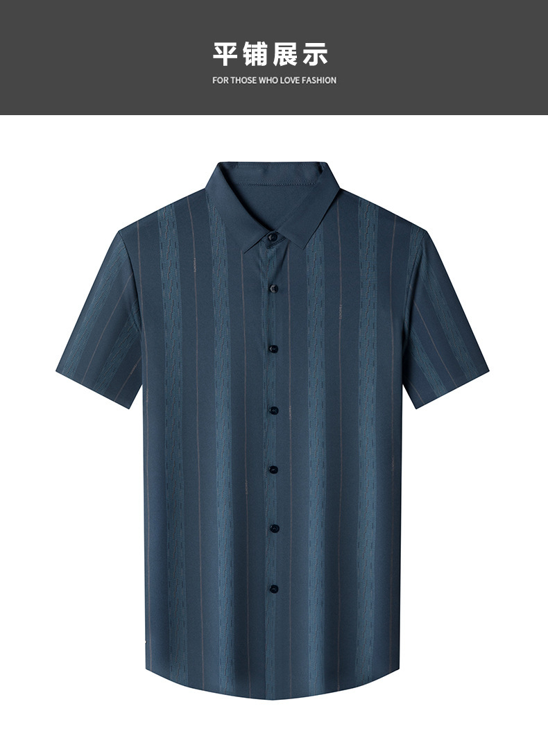 中年男式短袖衬衫夏装商务休闲冰丝无痕半袖宽松衬衣潮流上衣代发