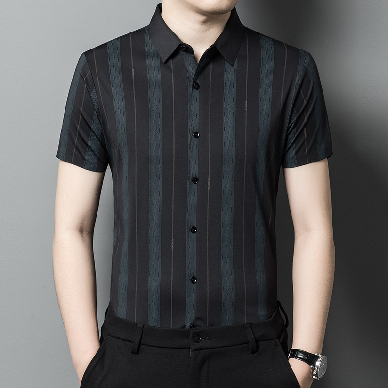 중년 남성 반팔 셔츠 여름 비즈니스 캐주얼 아이스 실크 원활한 반소매 느슨한 셔츠 트렌디 한 최고 세대 헤어스토어 가기