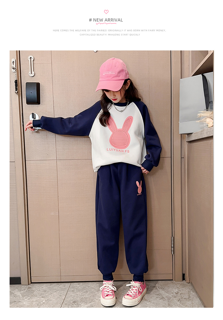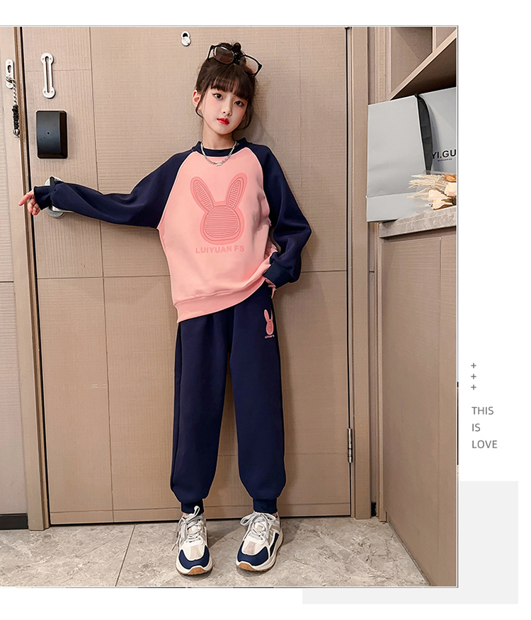 소녀의 봄 세트 2024 새로운 큰 소년 소녀의 서양식 어린이 의류 봄과 가을 스웨터 스포츠 스웨터 투피스 세트스토어 가기