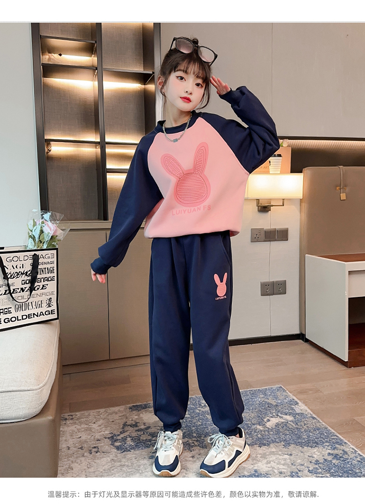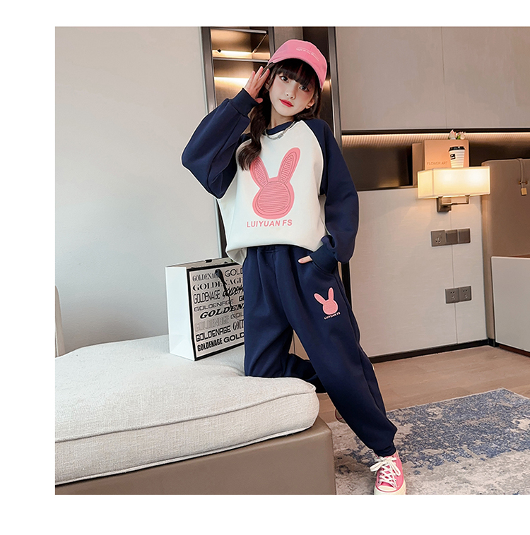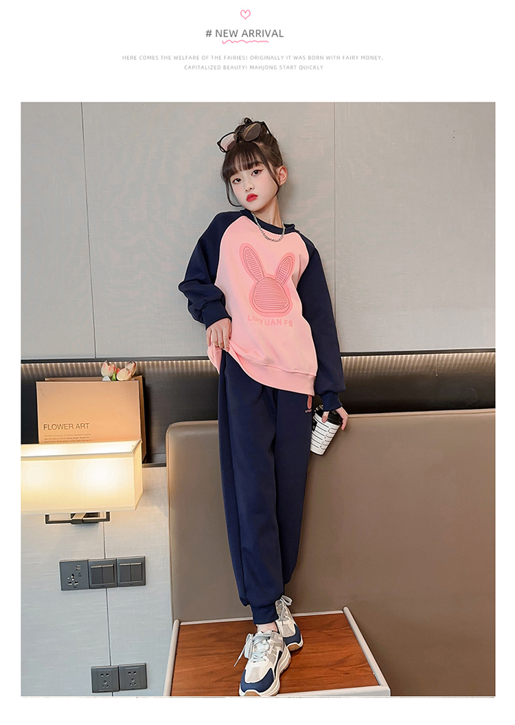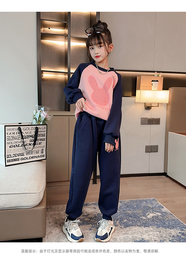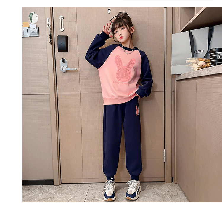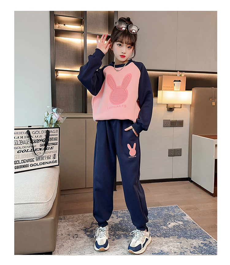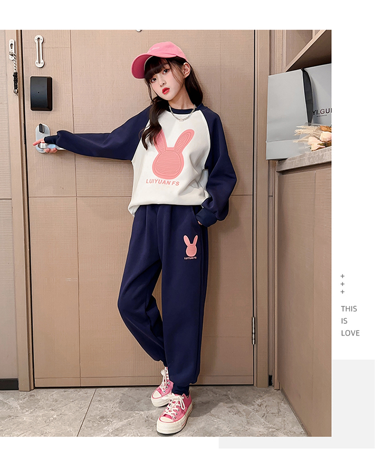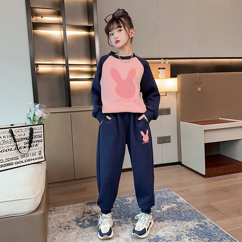 소녀의 봄 세트 2024 새로운 큰 소년 소녀의 서양식 어린이 의류 봄과 가을 스웨터 스포츠 스웨터 투피스 세트