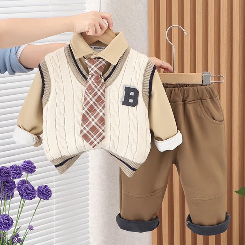남학생의 봄 가을 세트 2024 새로운 서양식 아기 봄 스웨터 3 피스 어린이 의류 한국 아카데미 스타일스토어 가기