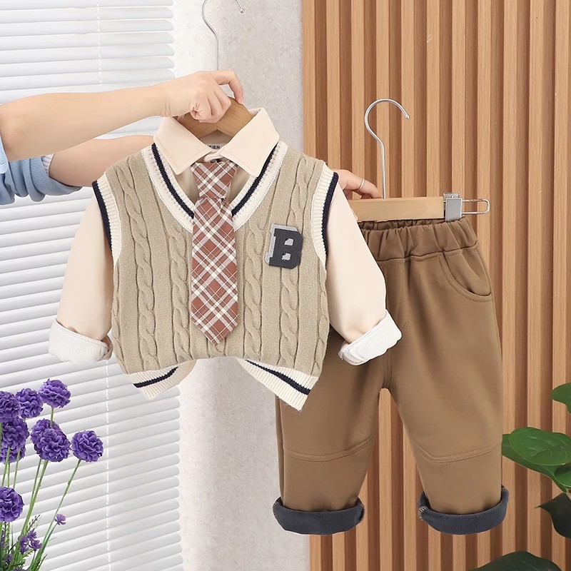 남학생의 봄 가을 세트 2024 새로운 서양식 아기 봄 스웨터 3 피스 어린이 의류 한국 아카데미 스타일