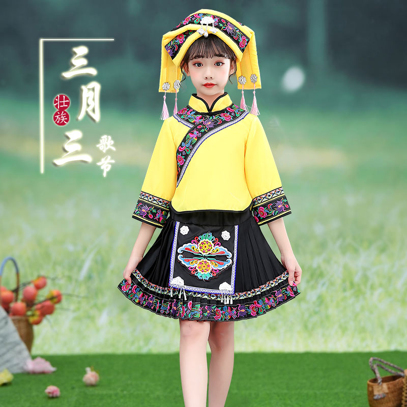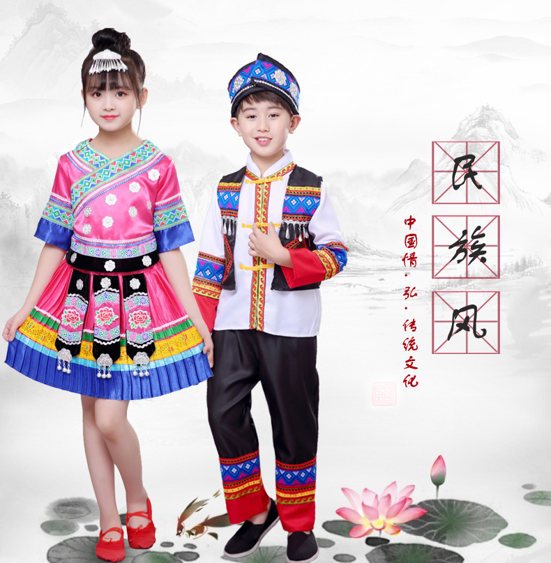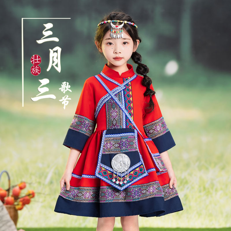 3 월 3 일 민족 의상 Guangxi Zhuang 56 소수 민족 어린이 Miao Yao Xizang Yi 의상스토어 가기