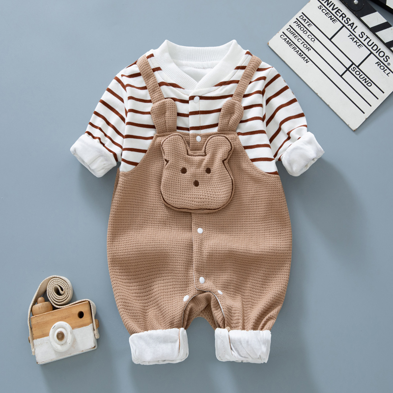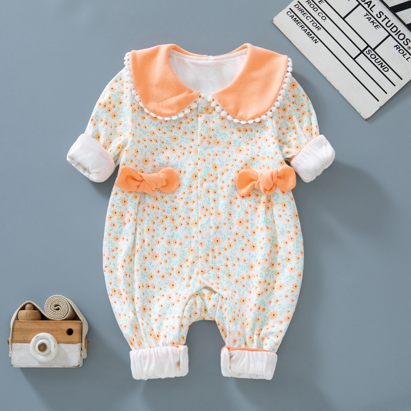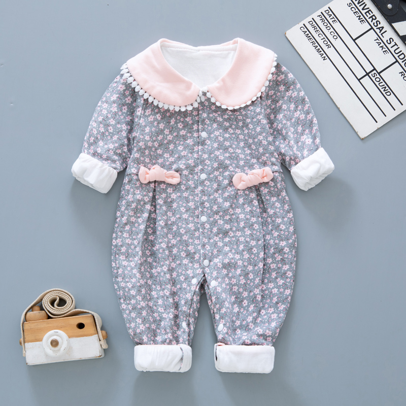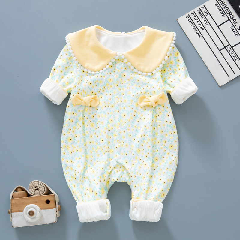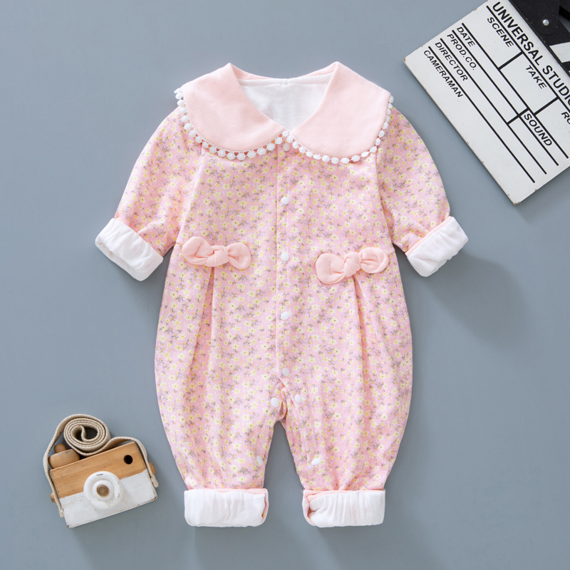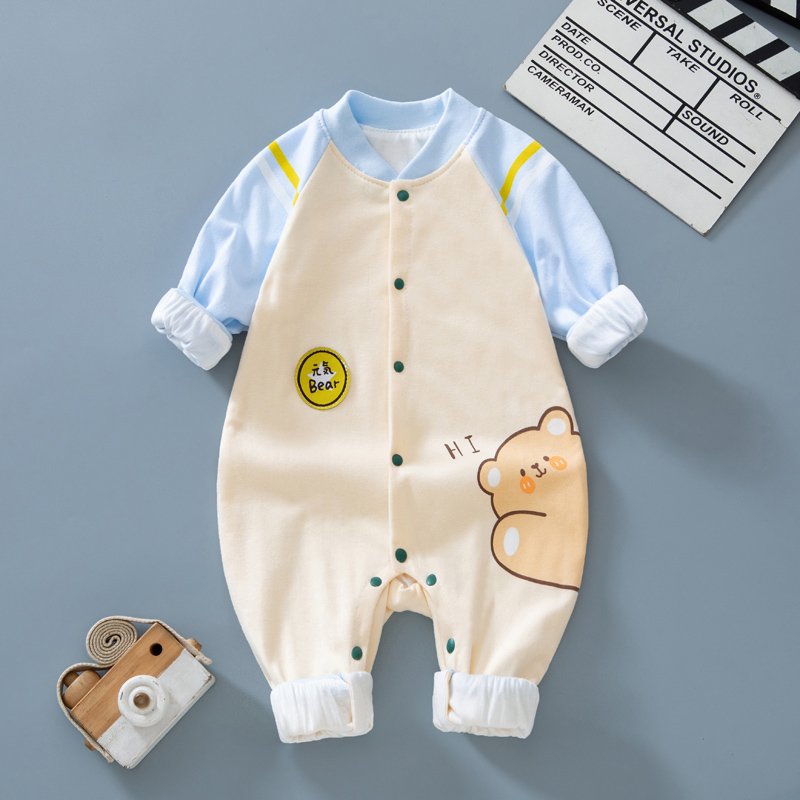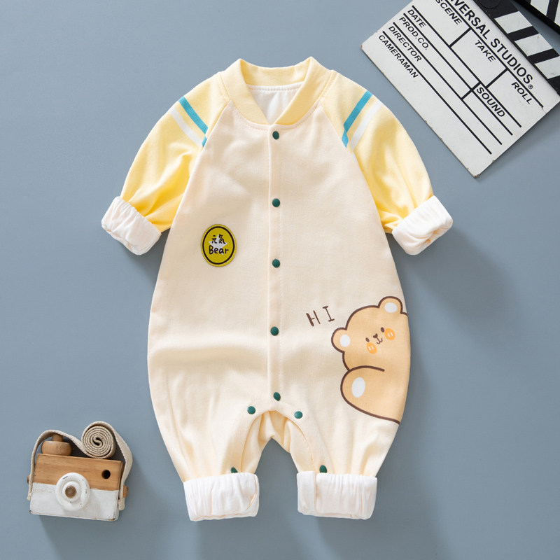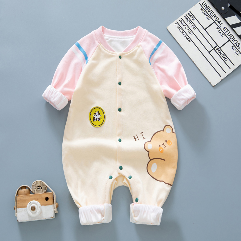 아기의 점프 수트 봄과 가을 순면 더블 레이어 신생아 옷 여성 코트 옷 남자 아기의 가을 옷 하카 등반 옷스토어 가기