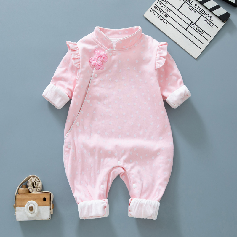 아기의 점프 수트 봄과 가을 순면 더블 레이어 신생아 옷 여성 코트 옷 남자 아기의 가을 옷 하카 등반 옷
