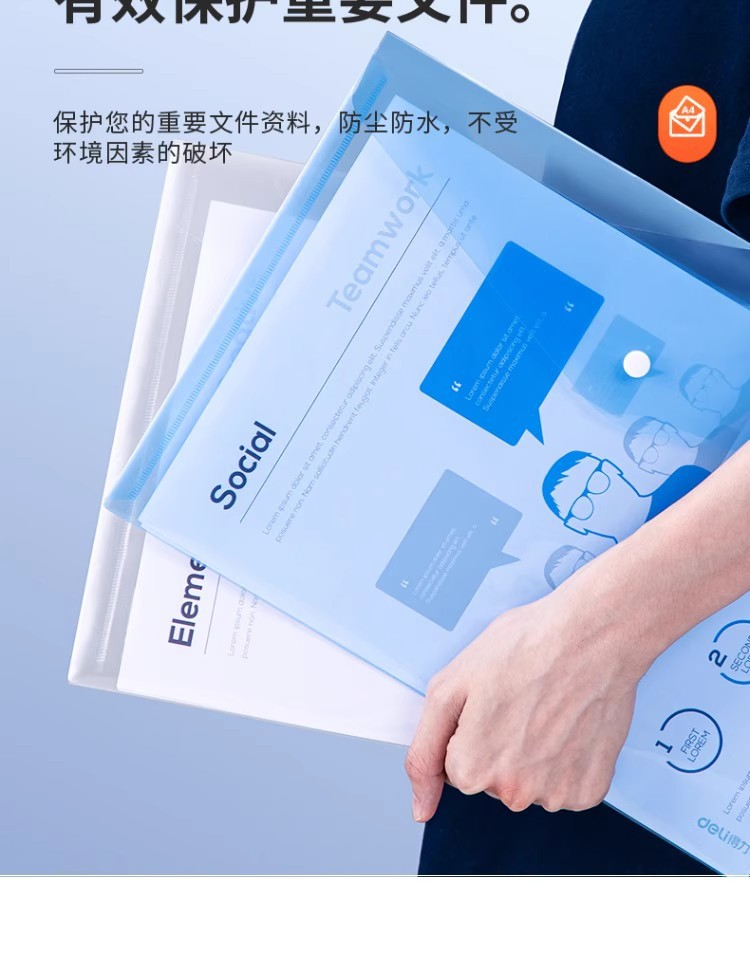 델리 8308 파일 가방 A4 투명 스냅 오피스 스토리지 파일 가방 파일 가방 저장 가방 정보 가방 도매