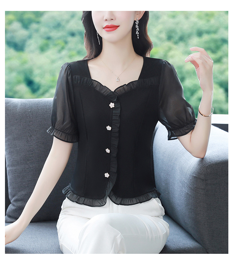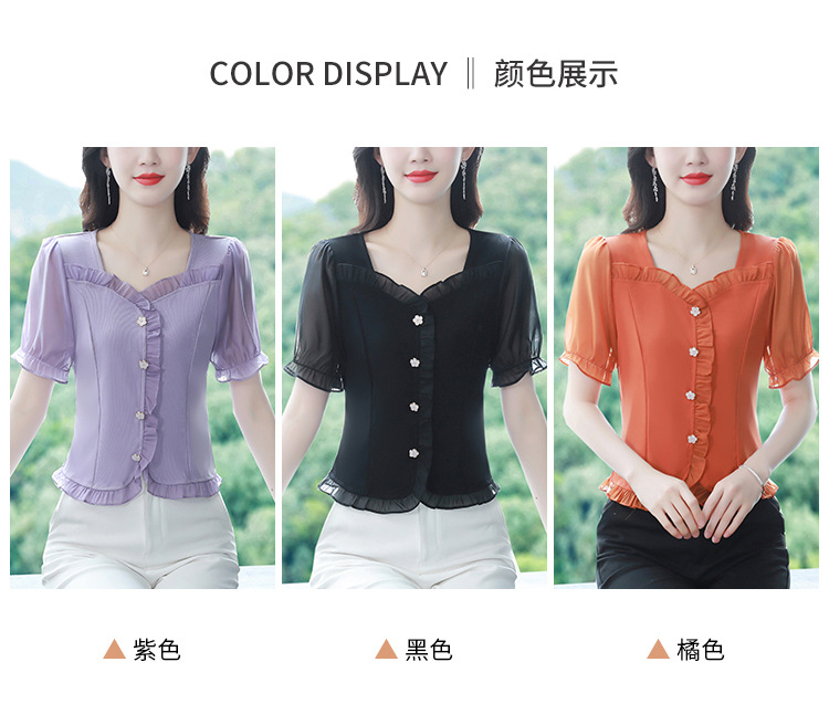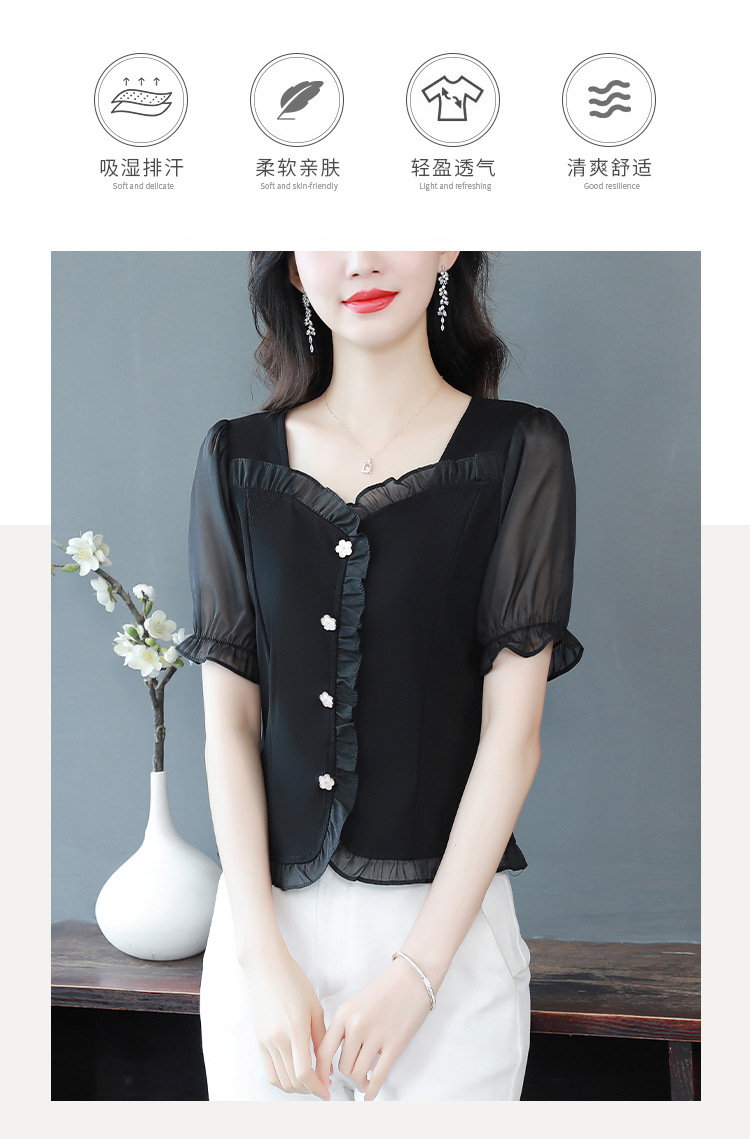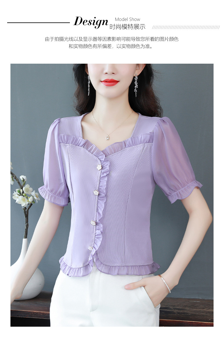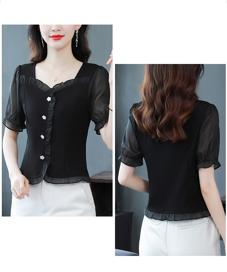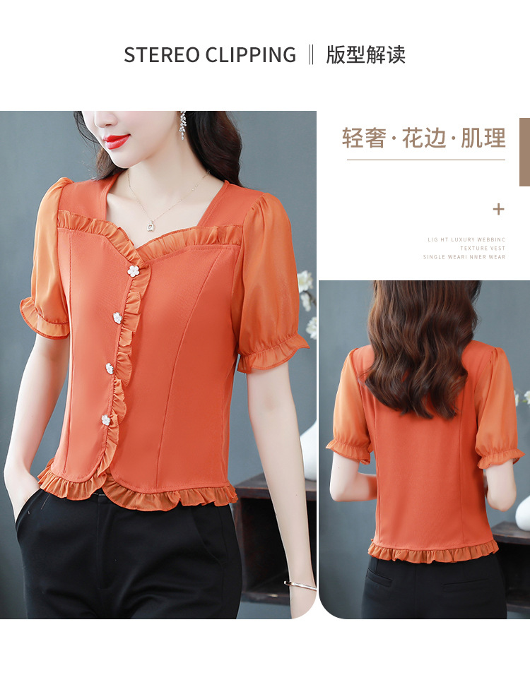 실제 촬영 여름 신상품 단색 레이스 스티치 반팔 슬림핏 탑