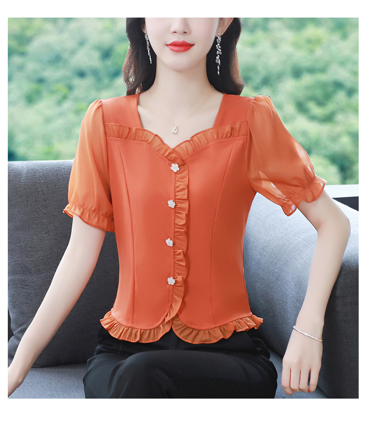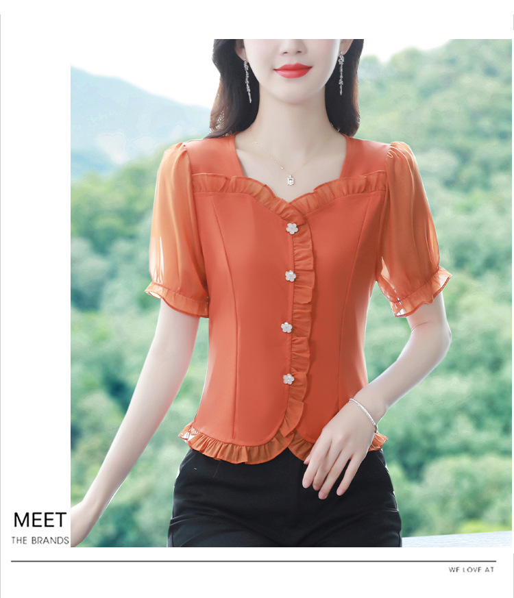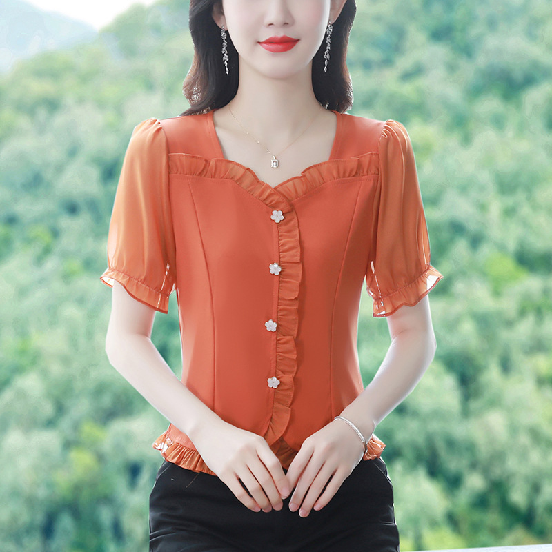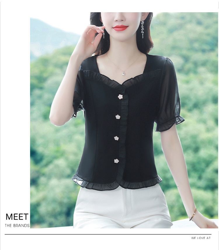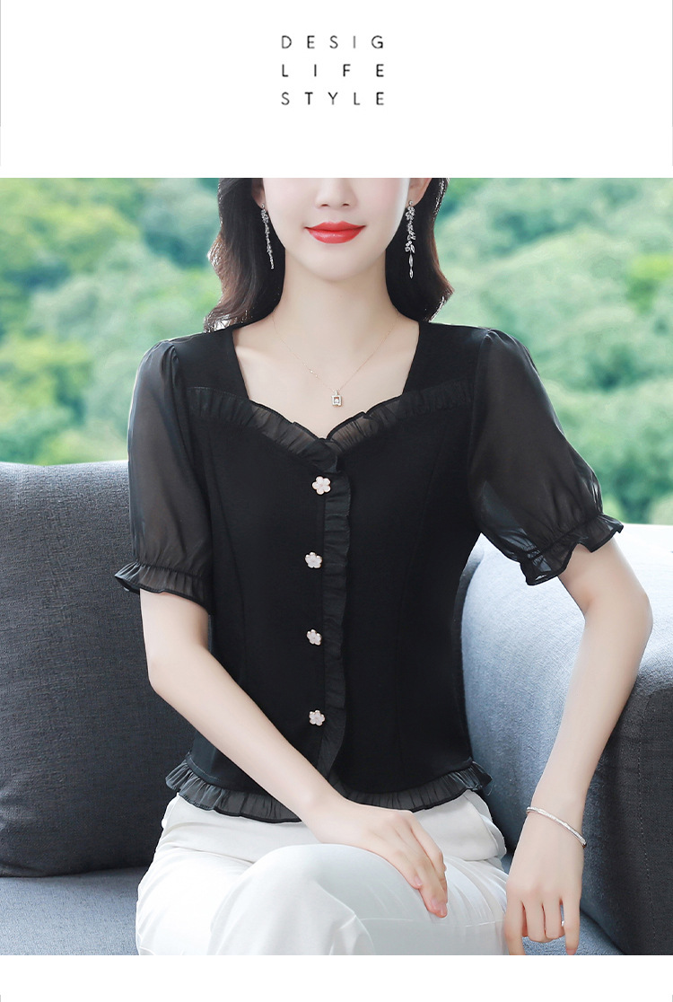 실제 샷 스팟 2024 여름 새로운 단색 레이스 스티칭 짧은 소매 기질 시대 감소 외국 스타일 슬림 핏 탑스토어 가기