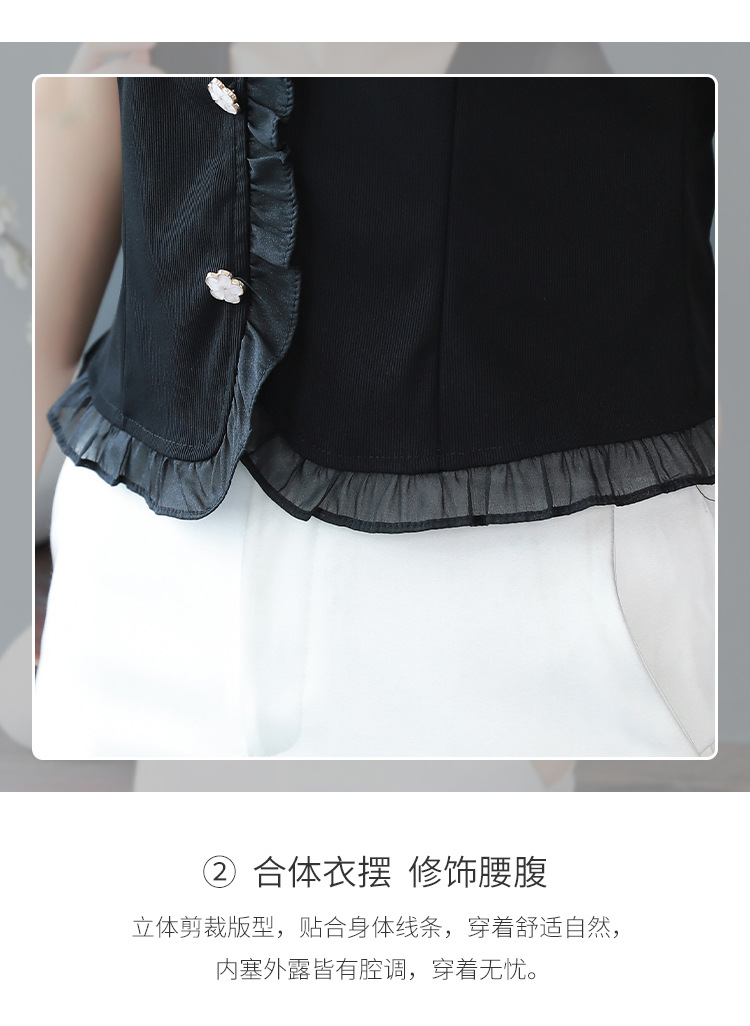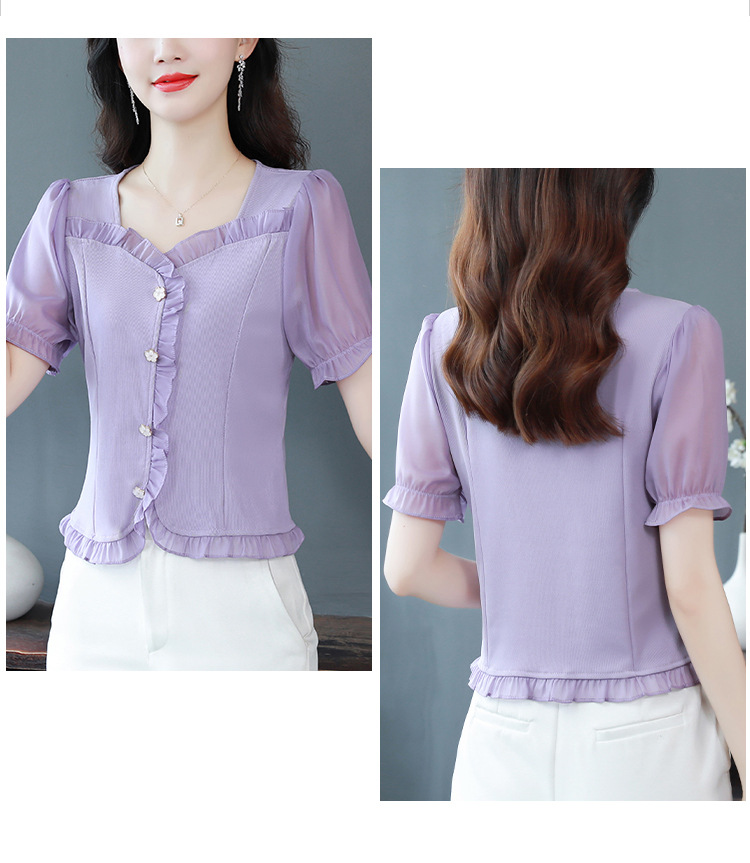 실제 샷 스팟 2024 여름 새로운 단색 레이스 스티칭 짧은 소매 기질 시대 감소 외국 스타일 슬림 핏 탑