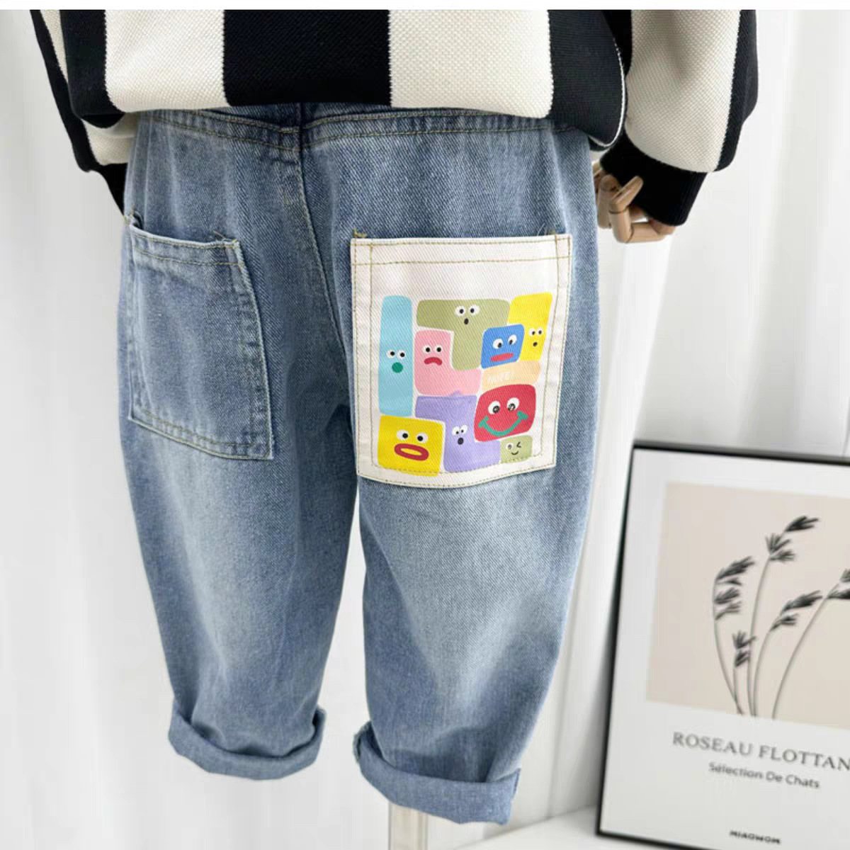 소년 청바지 봄 의류 2025 새로운 어린이 한국 스타일 느슨한 캐주얼 바지 중소 어린이를위한 잘 생긴 다용도 바지 유행