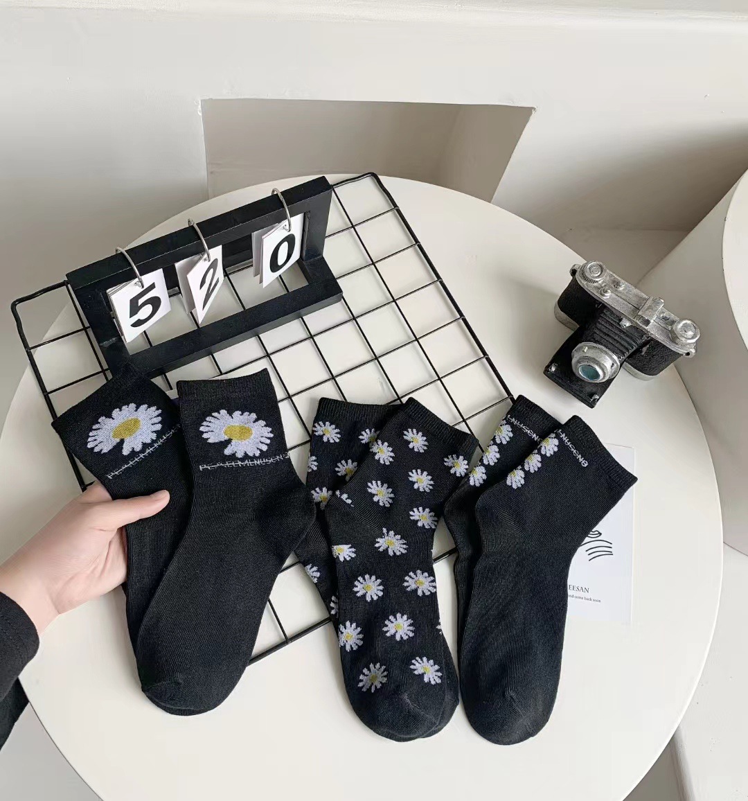 리틀 데이지 블랙 여성 양말 어린이 스타킹 국화, 트렌디 한 남자 한국 스타일 하이 탑 미드 튜브 스타킹 국경스토어 가기