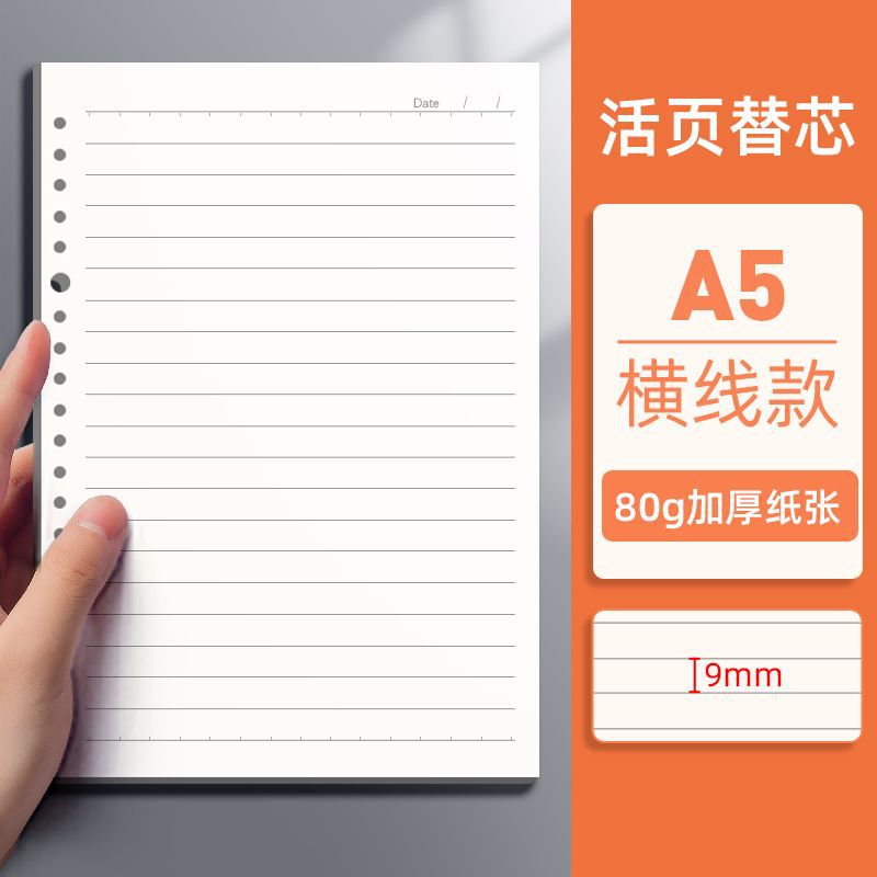 • A5 코어 교체/수평 라인/60 시트 (전면 및 후면 120 페이지)