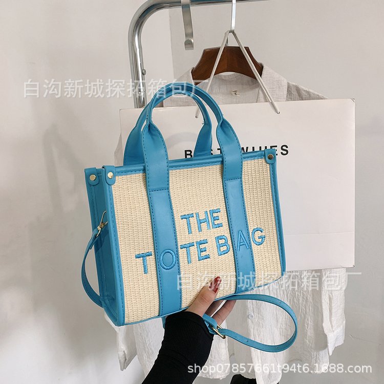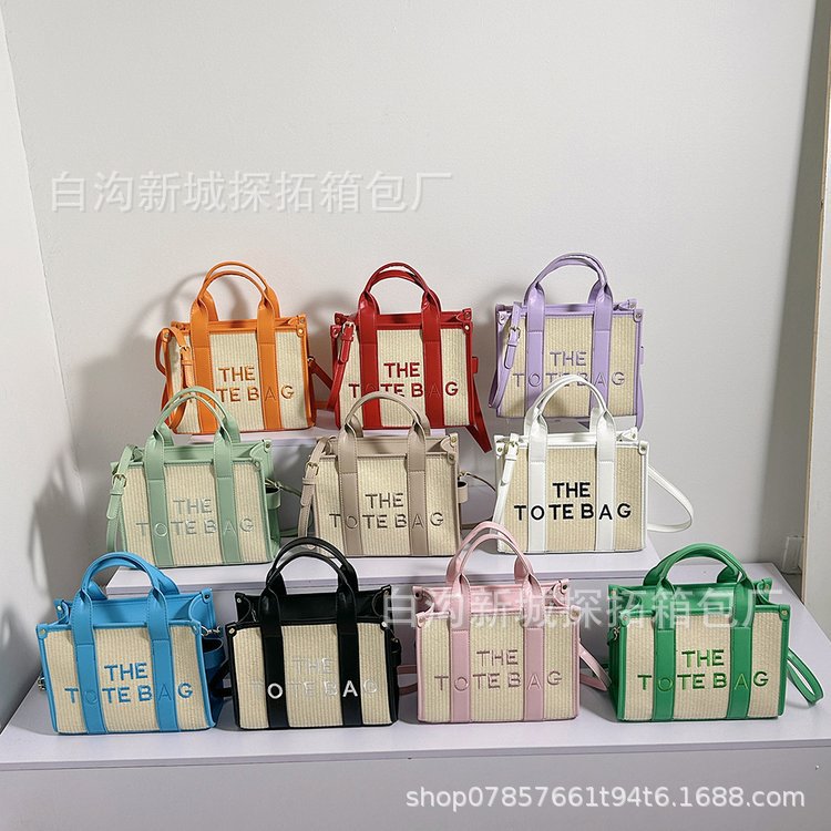 새로운 국경 패션 핸드백 대용량 단거리 여행 가방 간단한 대비 색상 짠 손 토트 백스토어 가기