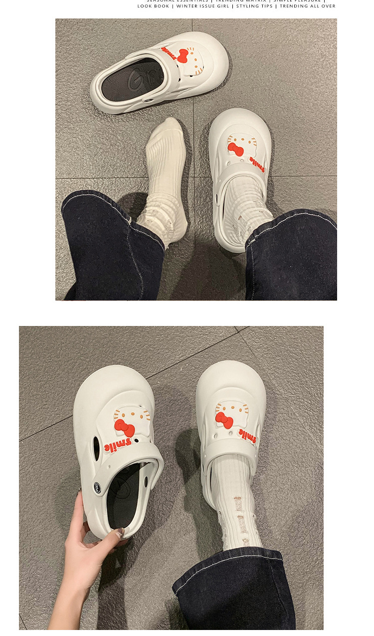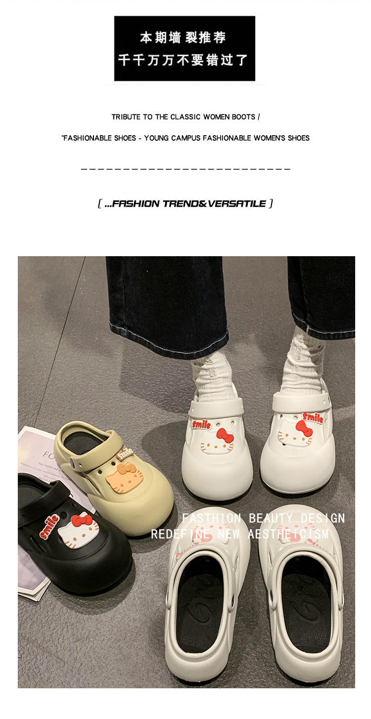 소프트 단독 동굴 신발 여성 귀여운 고양이 여름 2024 새로운 스타일 외부 착용 미끄럼 방지 두꺼운 단독 EVA 소프트 단독 동굴 신발 여성