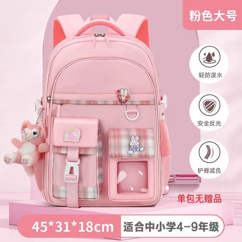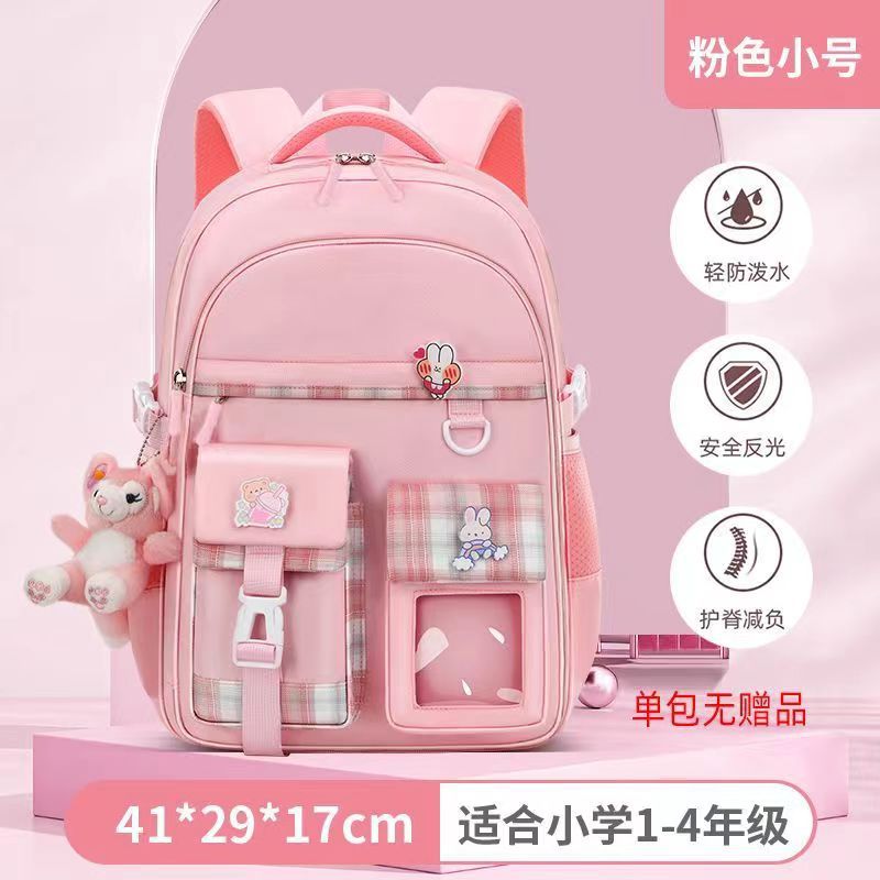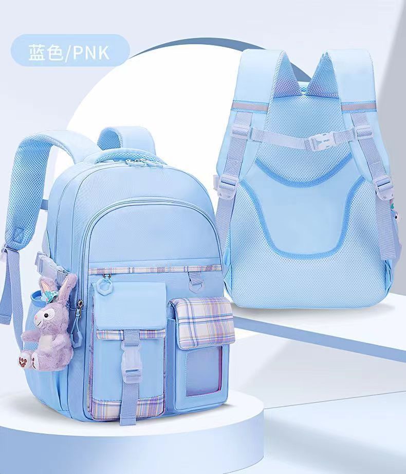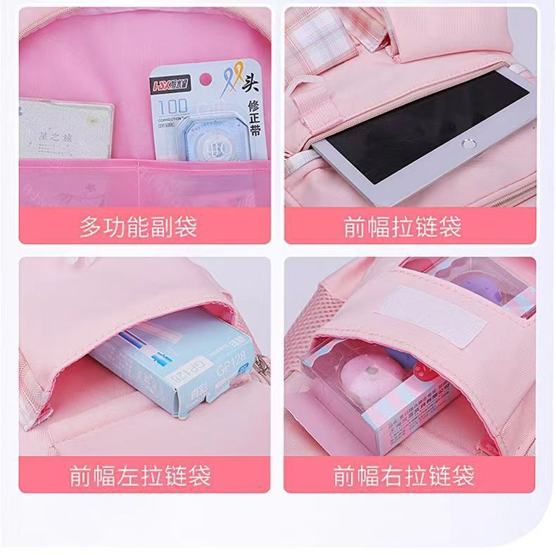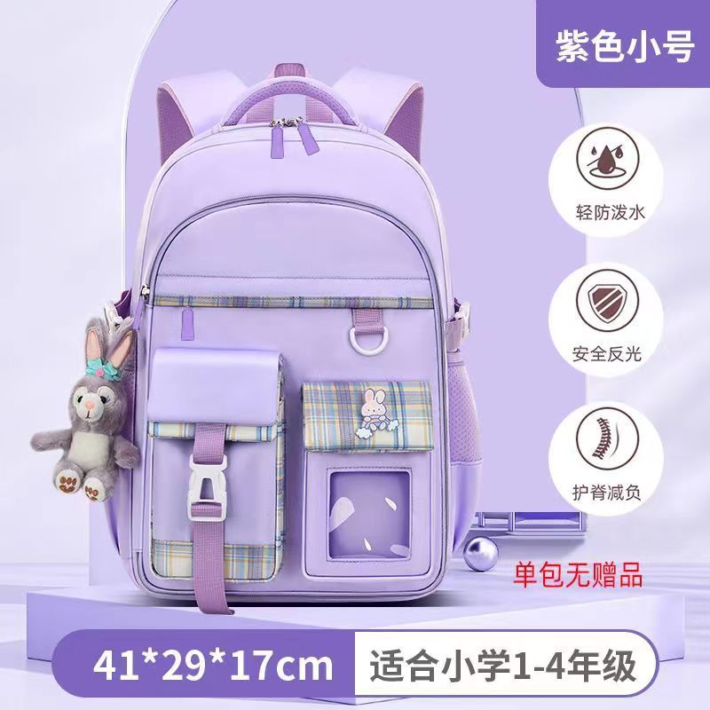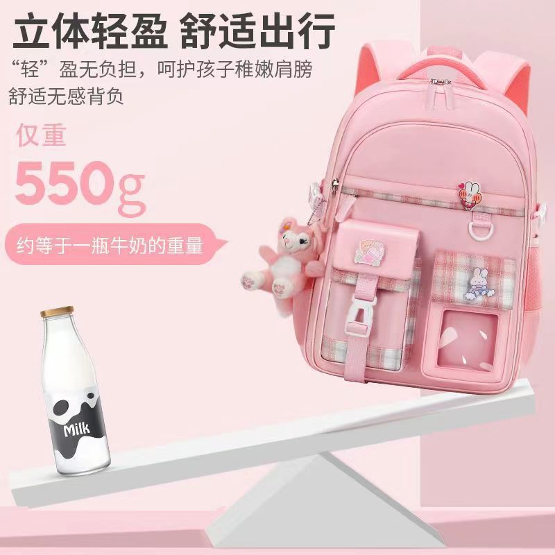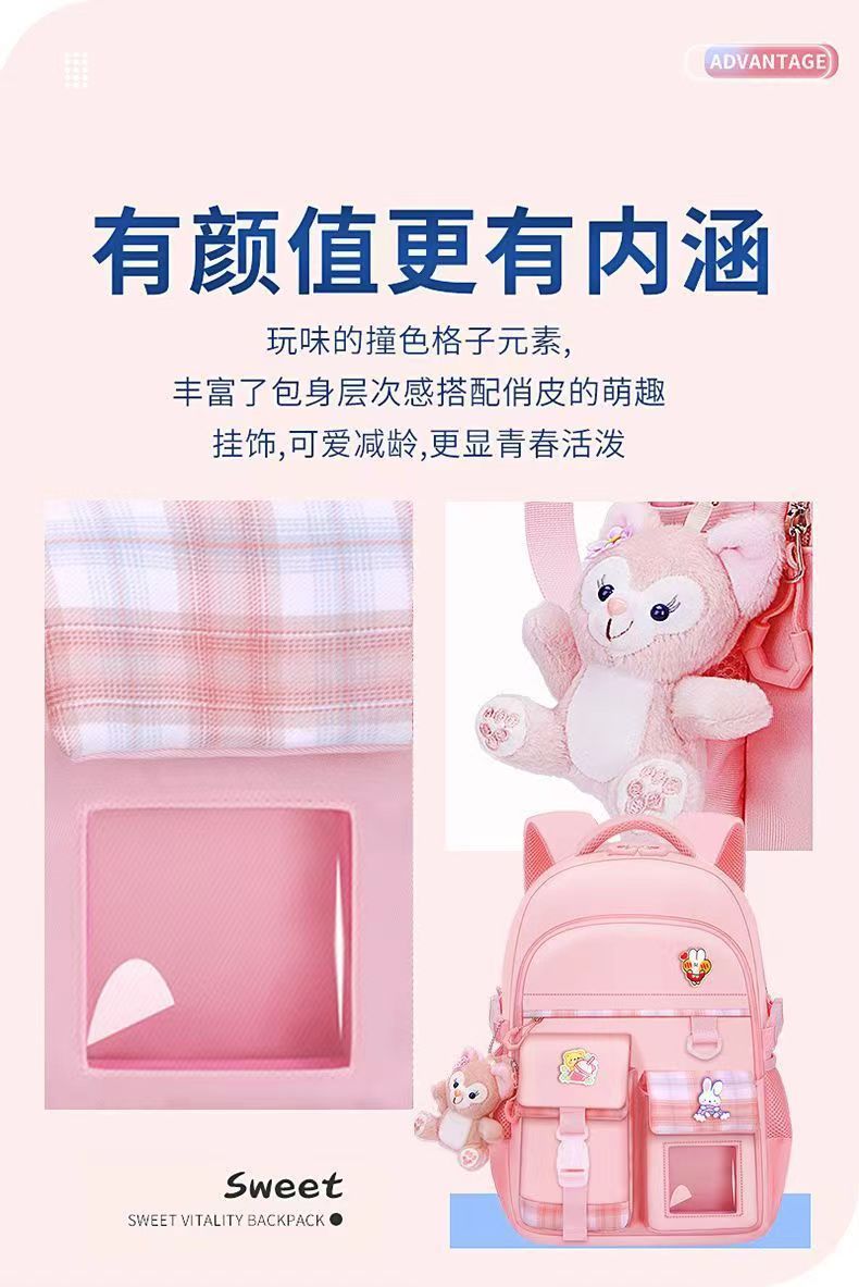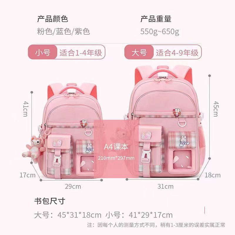 24 신형 여학생 책가방 1-6학년 체크무늬 여아 경량 어린이 척추보호 가방 무게 분산 스트랩 포함