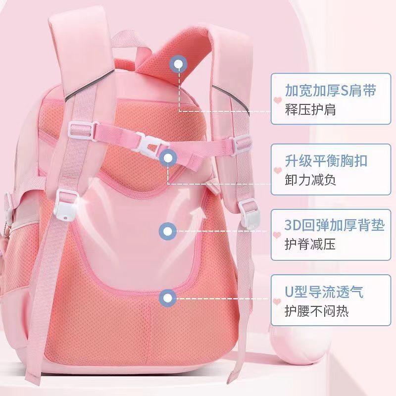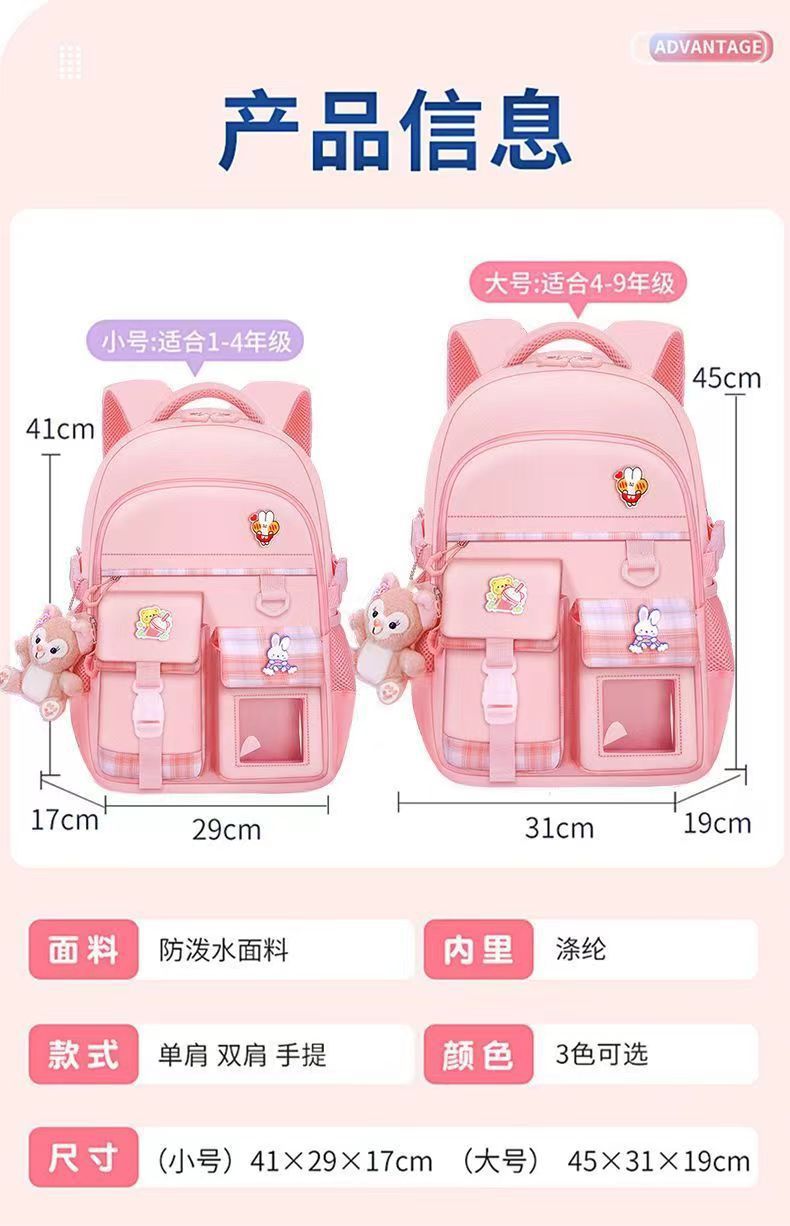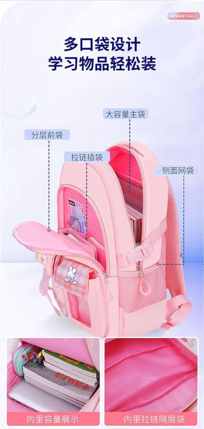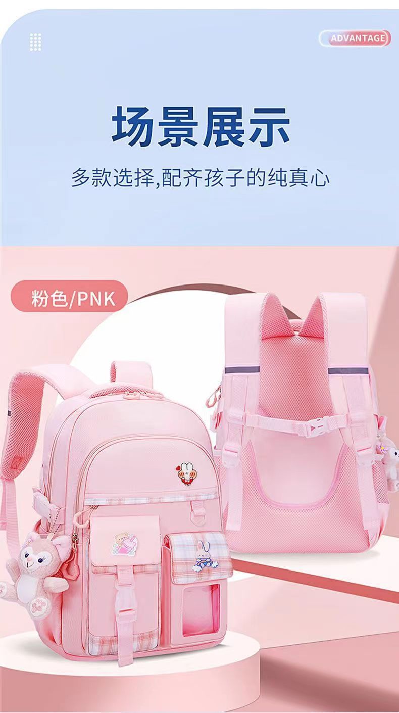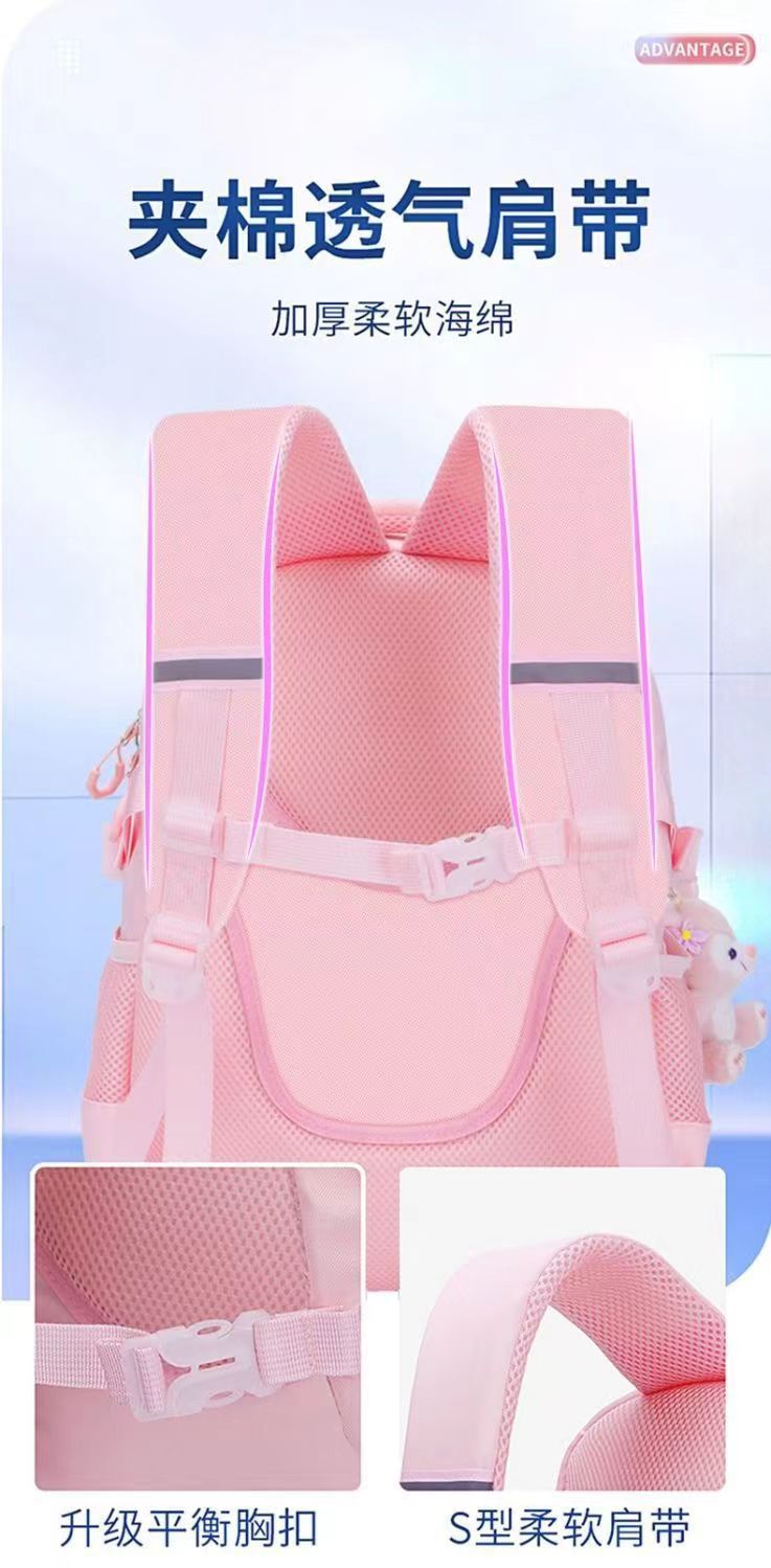 24 신형 여학생 책가방 1-6학년 체크무늬 여아 경량 어린이 척추보호 가방 무게 분산 스트랩 포함