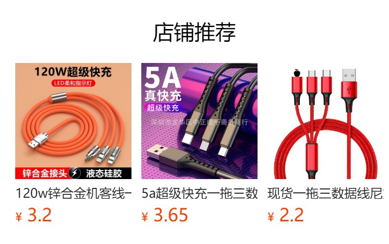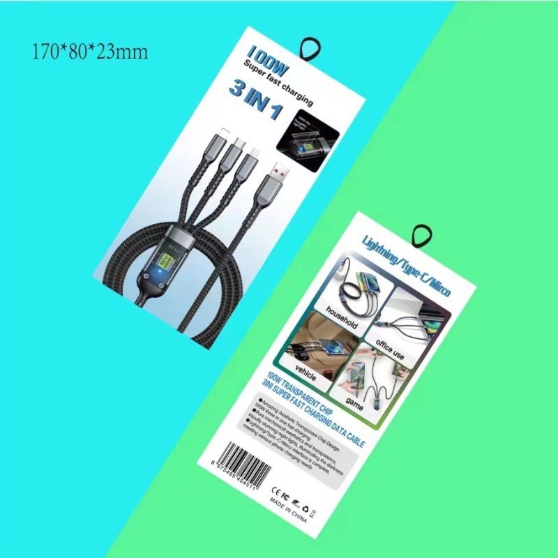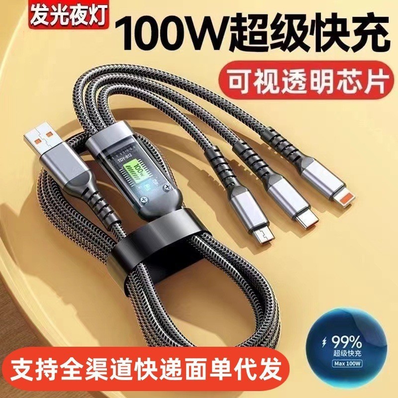 관점 칩 100w 고속 충전 3-in-1 데이터 케이블 자동차 Apple type-c 케이블에 적합한 1-3 플래시 충전스토어 가기