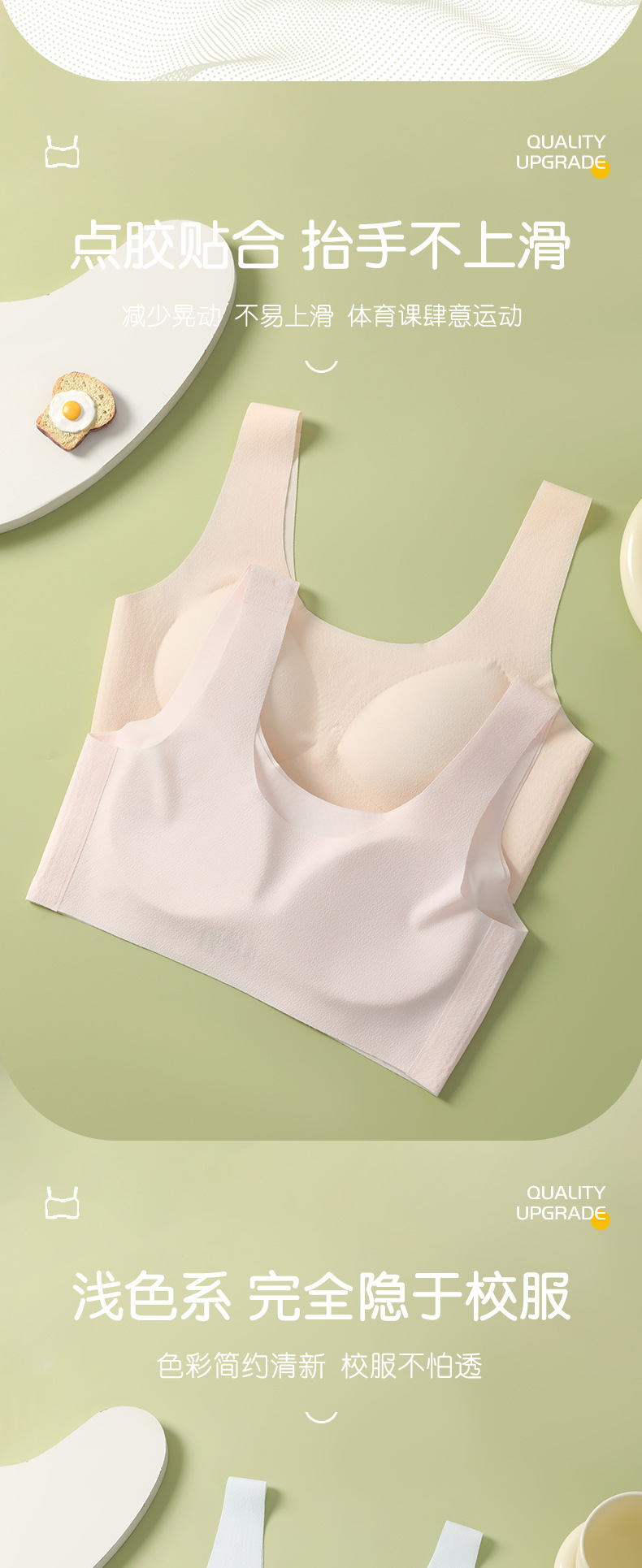발달소녀 브래지어 추적없는 고탄성 속옷 중학생 안티 범프 작은 조끼 사춘기 얇은 가슴 랩