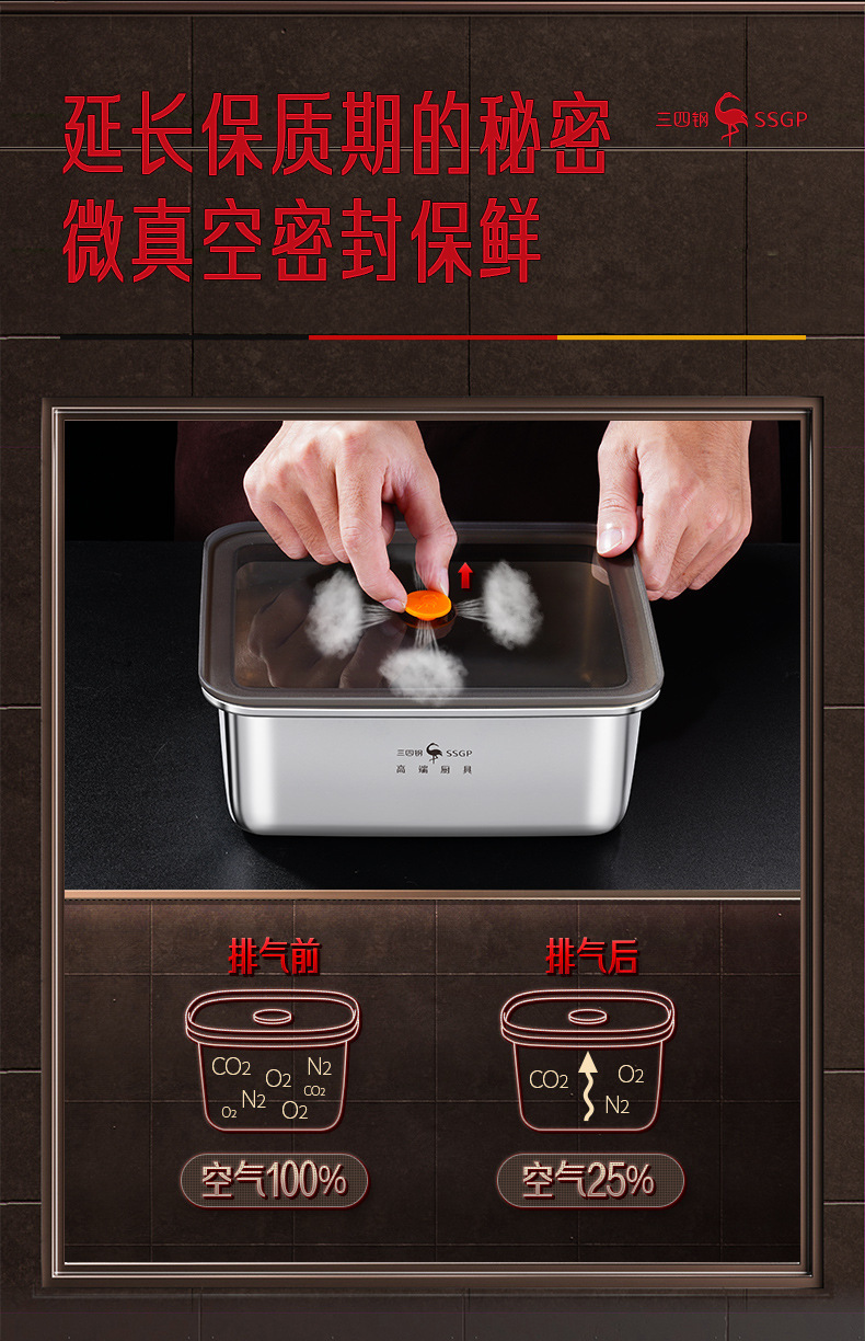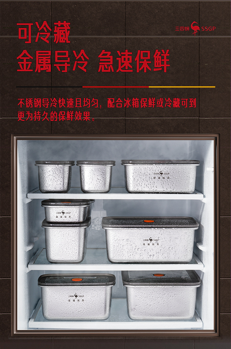 SSGP crisper 식품 등급 316 스테인레스 스틸 도시락 과일 도시락 냉장고 냉동고 보관 상자 밀봉 상자