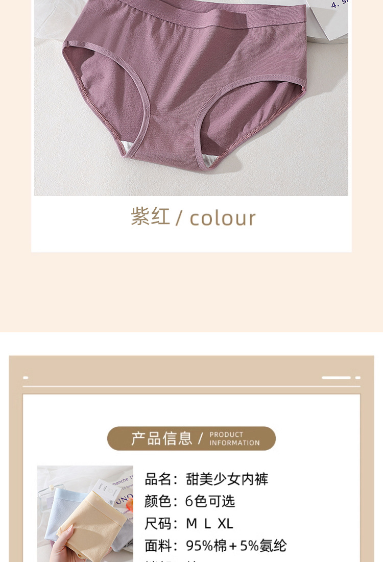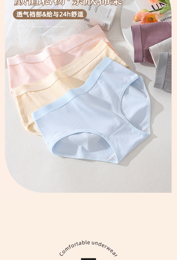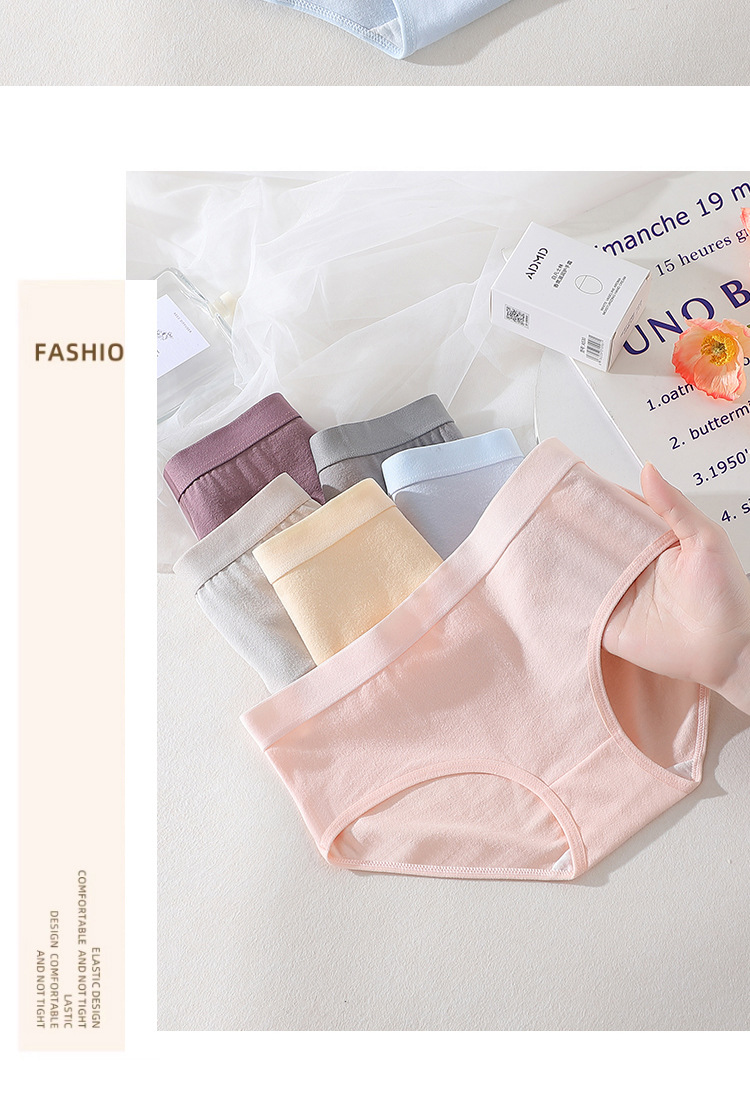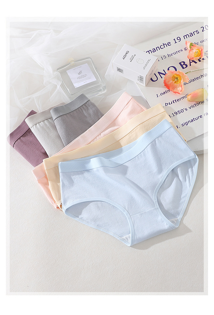 32 카운트 빗질 된 면화 중간 허리 순수 면화 속옷 여성 간단한 솔리드 컬러 면화 가랑이 소녀 팬티 도매 준비스토어 가기