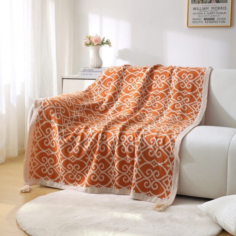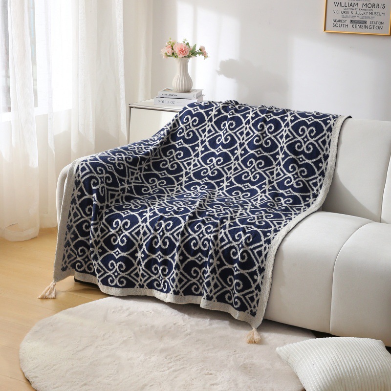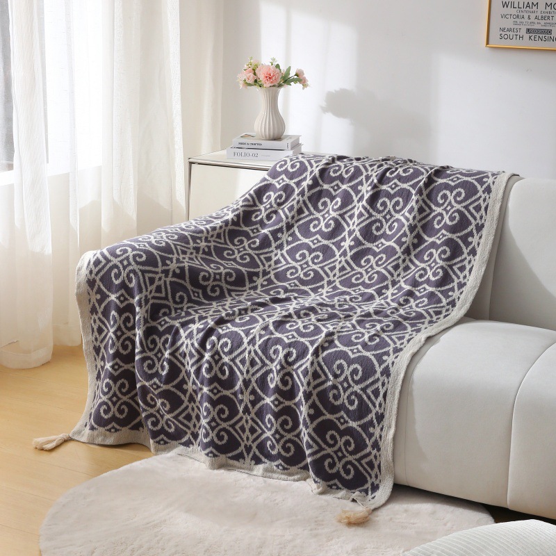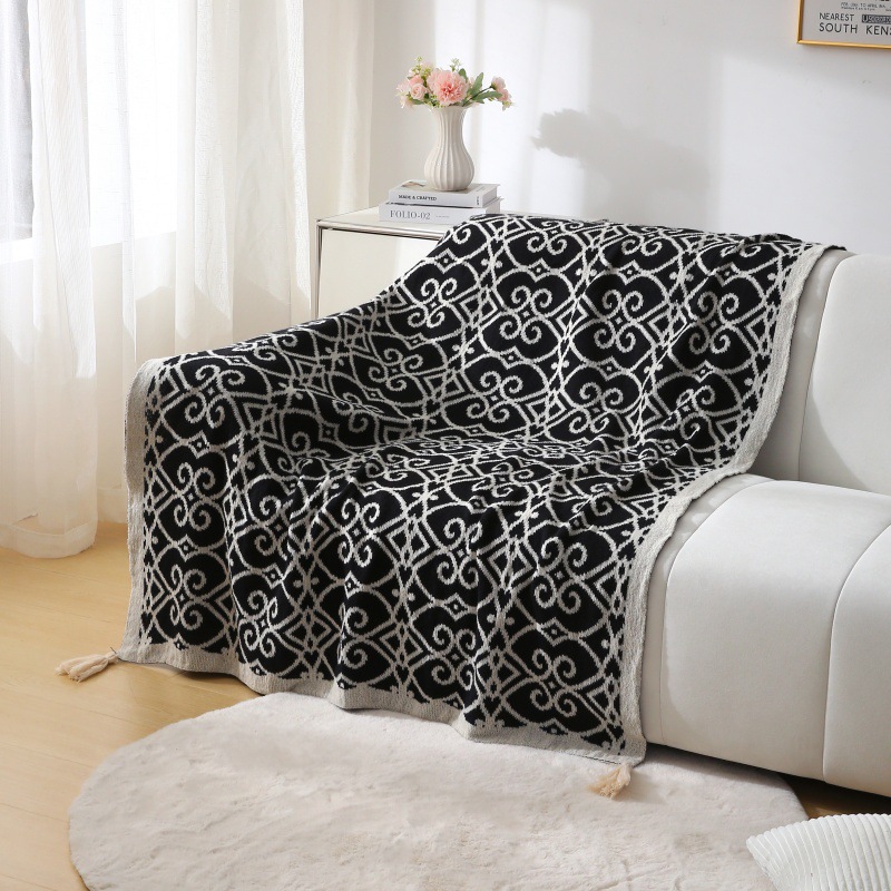 북유럽 고급 니트 울 담요 레트로 거실 소파 담요 사무실 점심 휴식 담요 낮잠 담요 블랙 담요