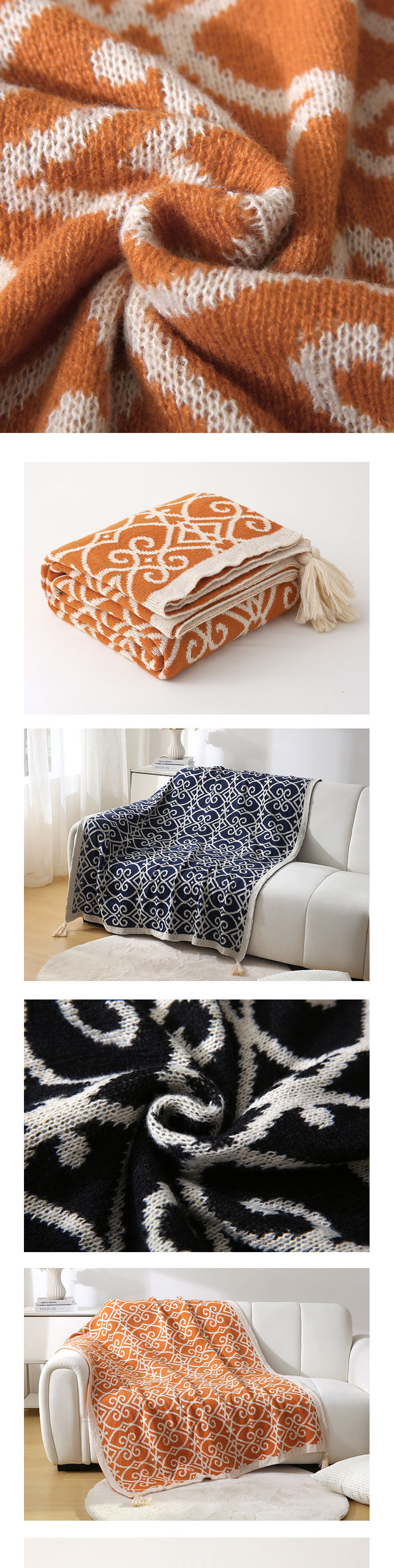 북유럽 고급 니트 울 담요 레트로 거실 소파 담요 사무실 점심 휴식 담요 낮잠 담요 블랙 담요스토어 가기
