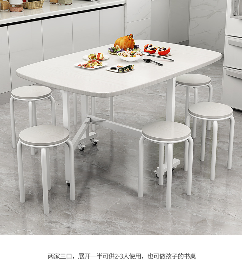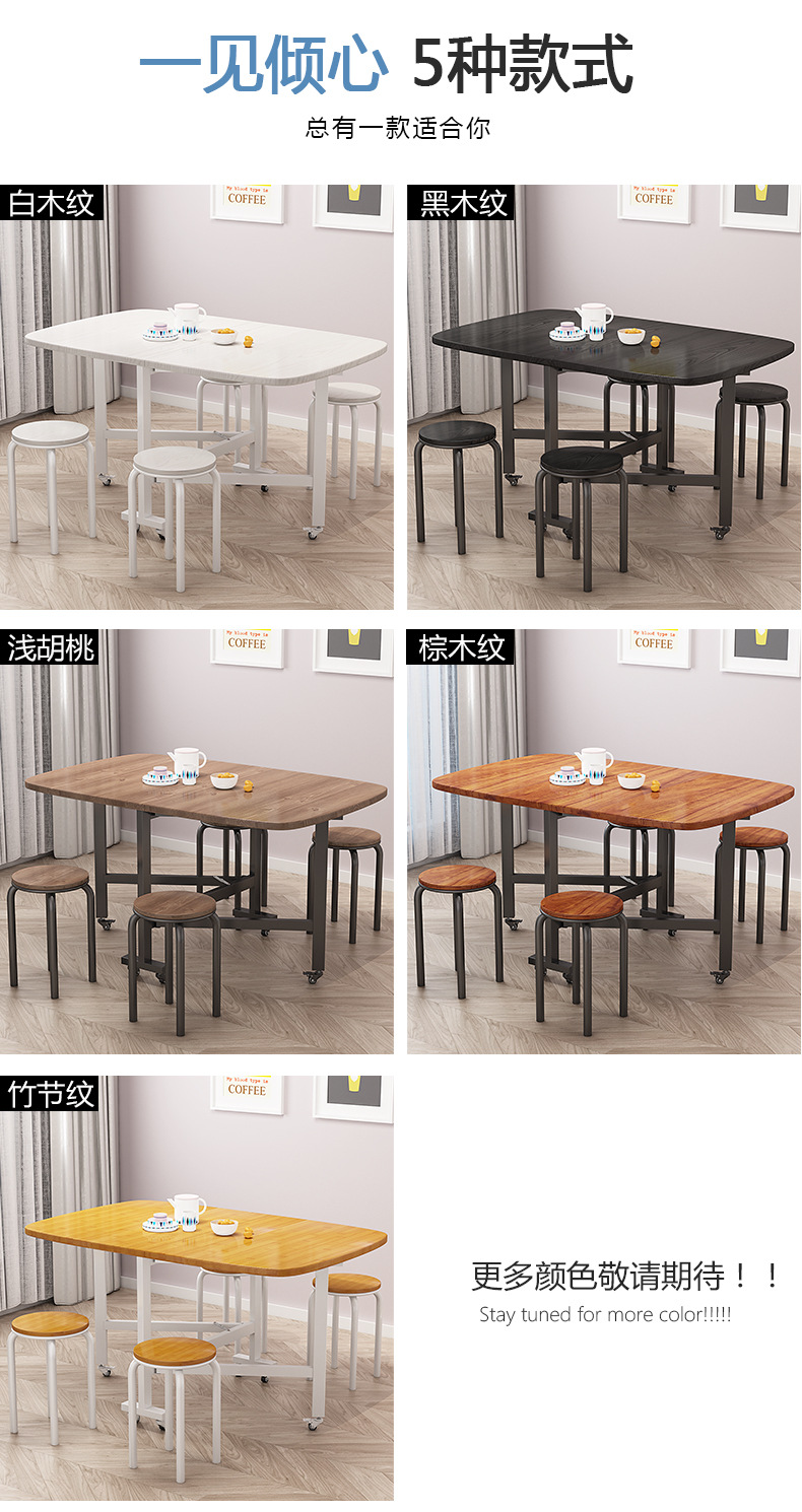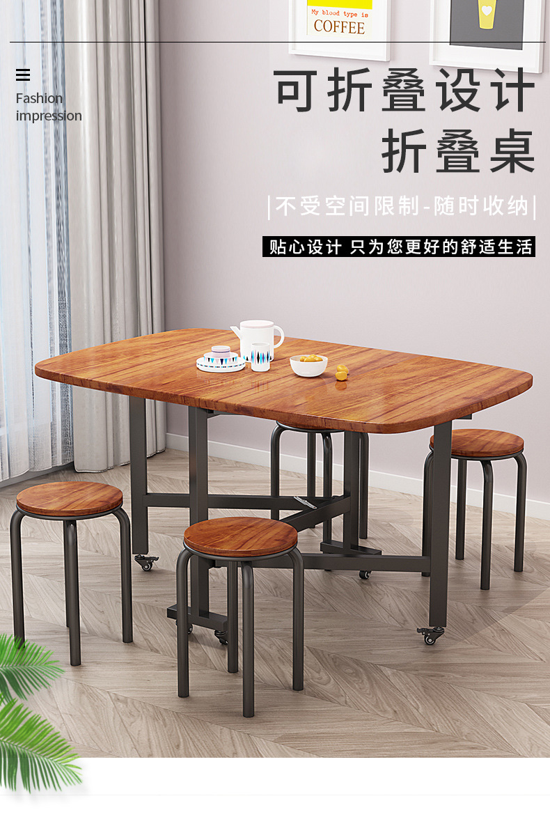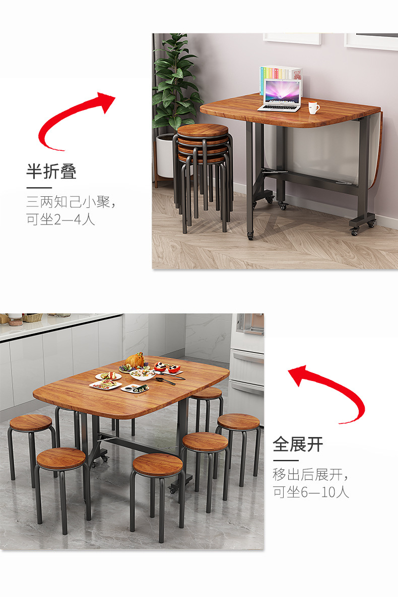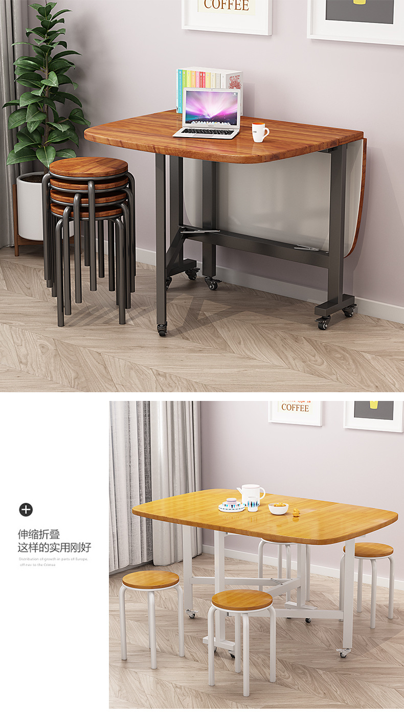 접이식 테이블 식탁 가정용 간단한 직사각형 식탁 접이식 테이블 접이식 테이블 모바일 바퀴 달린 테이블과 의자 조합 4 명과 6 명스토어 가기