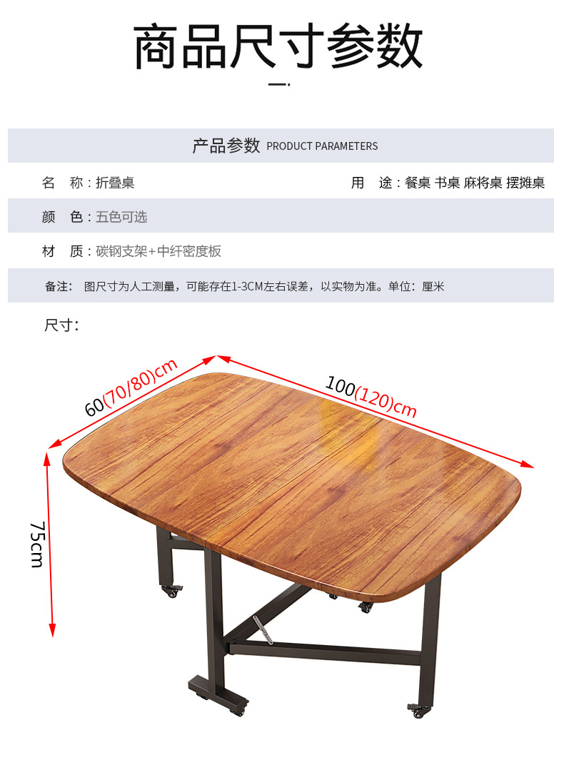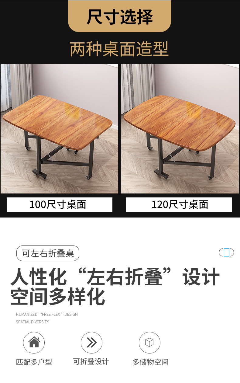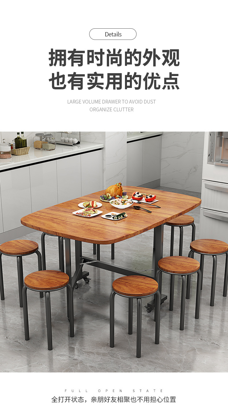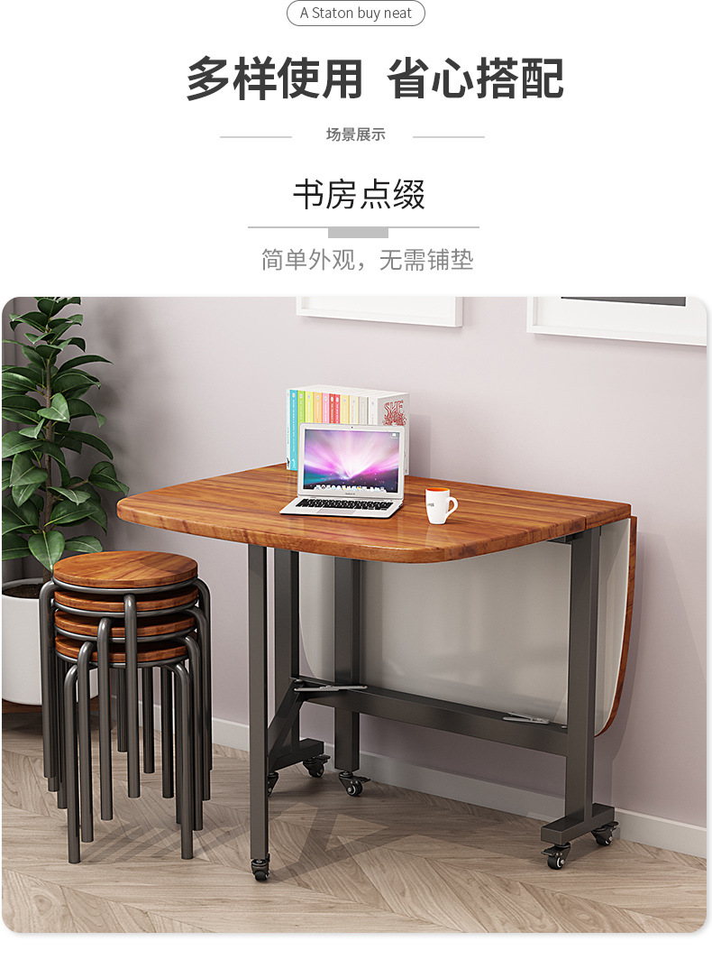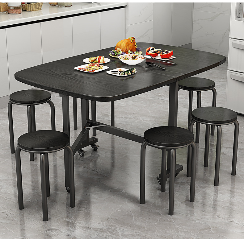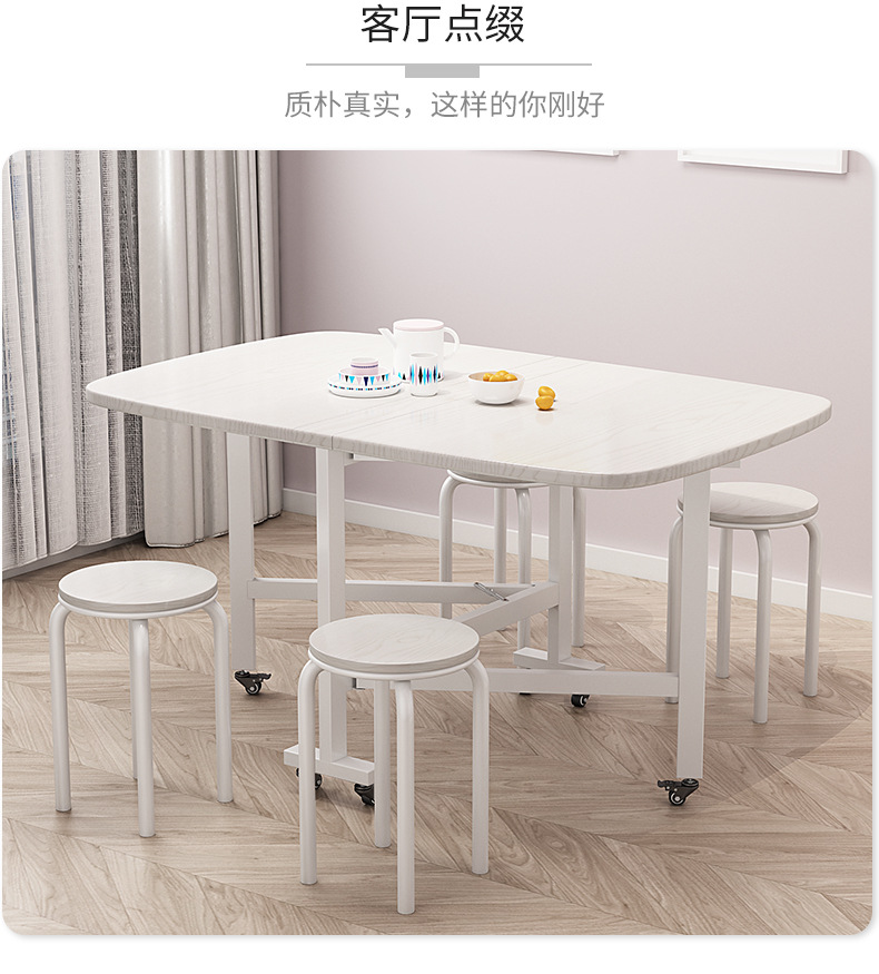 접이식 테이블 식탁 가정용 간단한 직사각형 식탁 접이식 테이블 접이식 테이블 모바일 바퀴 달린 테이블과 의자 조합 4 명과 6 명스토어 가기