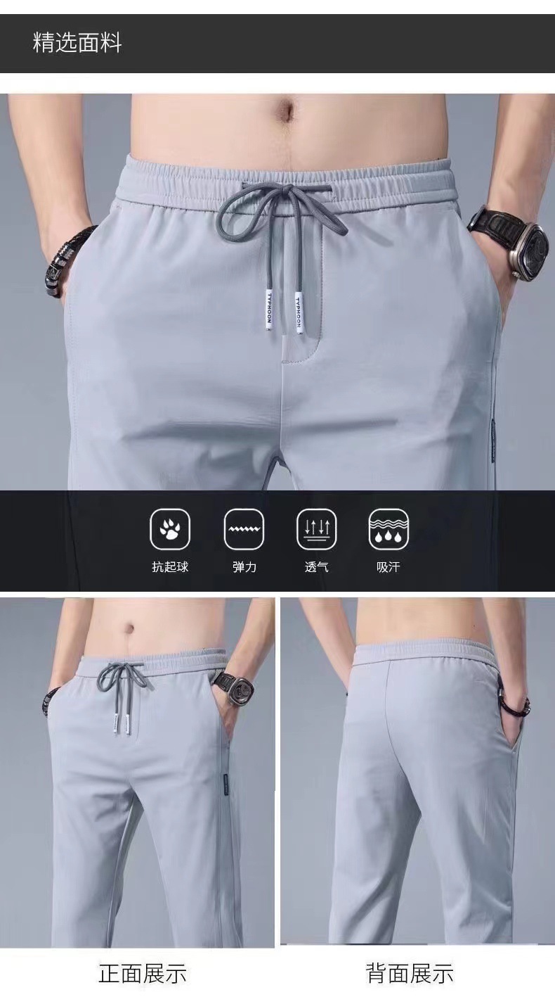 아이스 실크 바지 남자 여름 새로운 블랙 라벨 얇은 비즈니스 캐주얼 바지 스트레치 통기성 스트레이트 대형 스포츠 바지스토어 가기