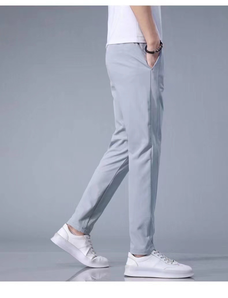 아이스 실크 바지 남자 여름 새로운 블랙 라벨 얇은 비즈니스 캐주얼 바지 스트레치 통기성 스트레이트 대형 스포츠 바지