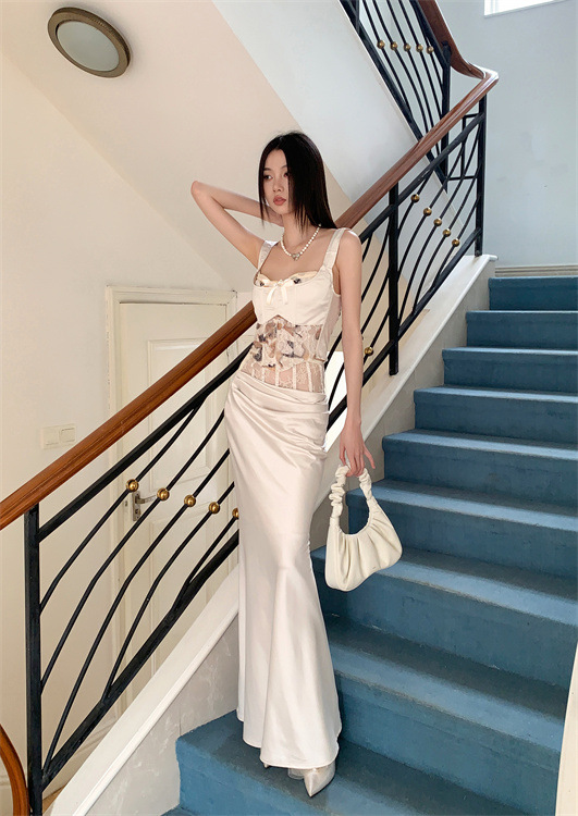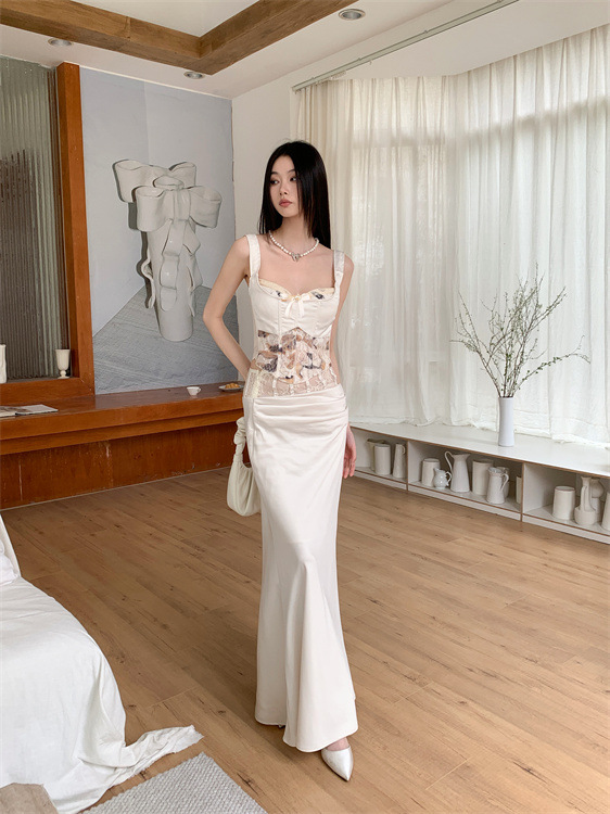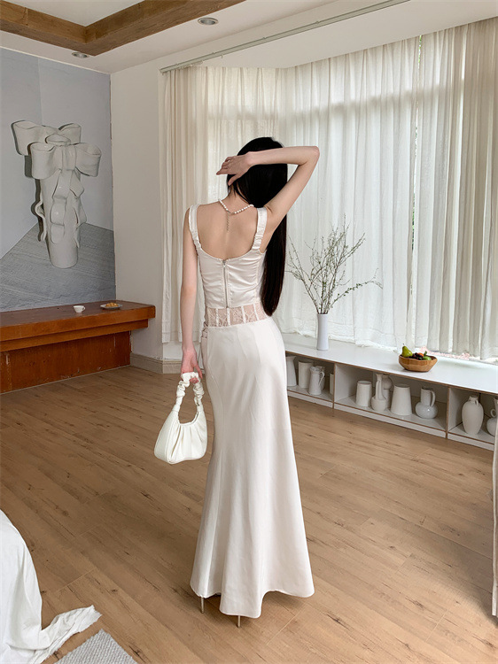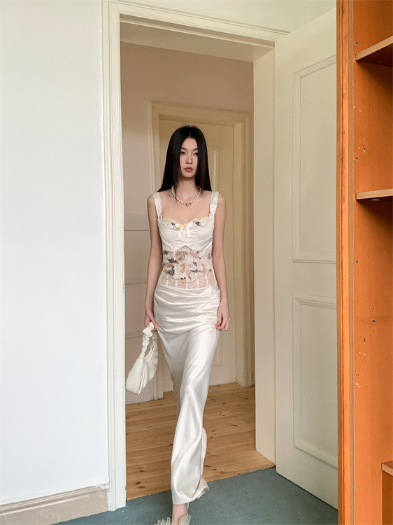 세트 여성 디자인 틈새 레이스 슬링 피스본 조끼 탑 하이 웨이스트 롱 스커트 핫 걸 투피스 세트스토어 가기