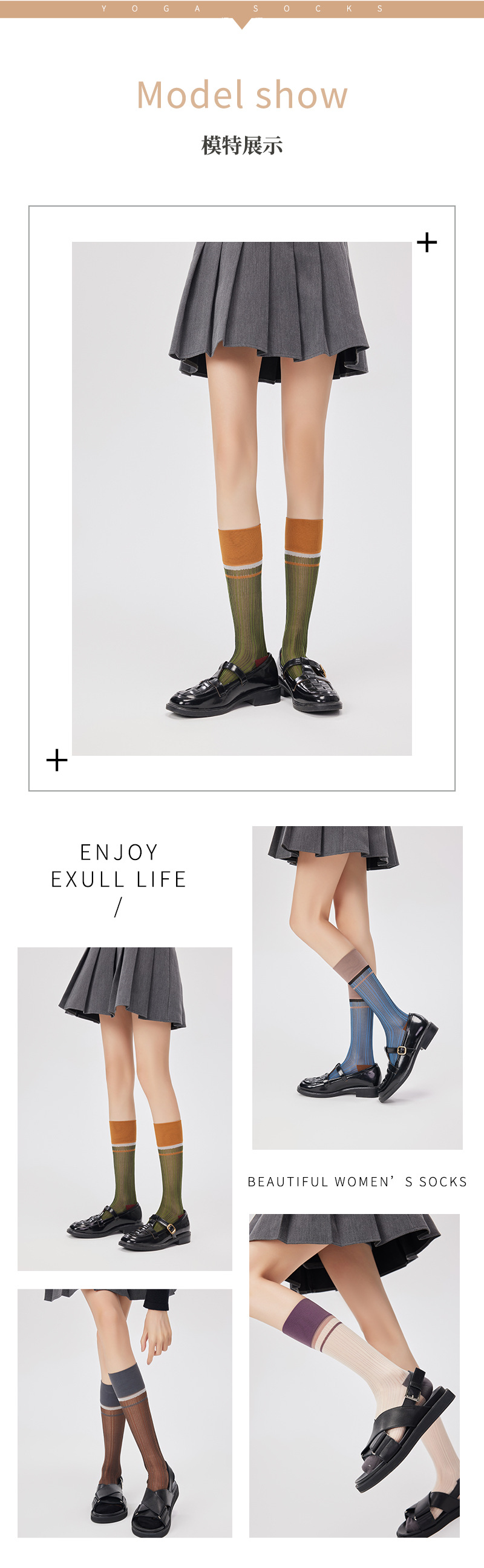 양말 여성의 봄과 여름 얇은 복고풍 컬러 매칭 패션 카드 스타킹 여성용 땀 흡수성 통기성 탈취제 스트라이프 하이 양말