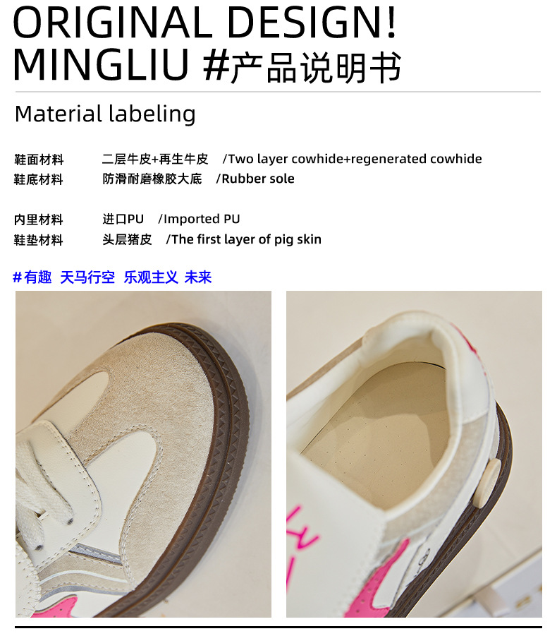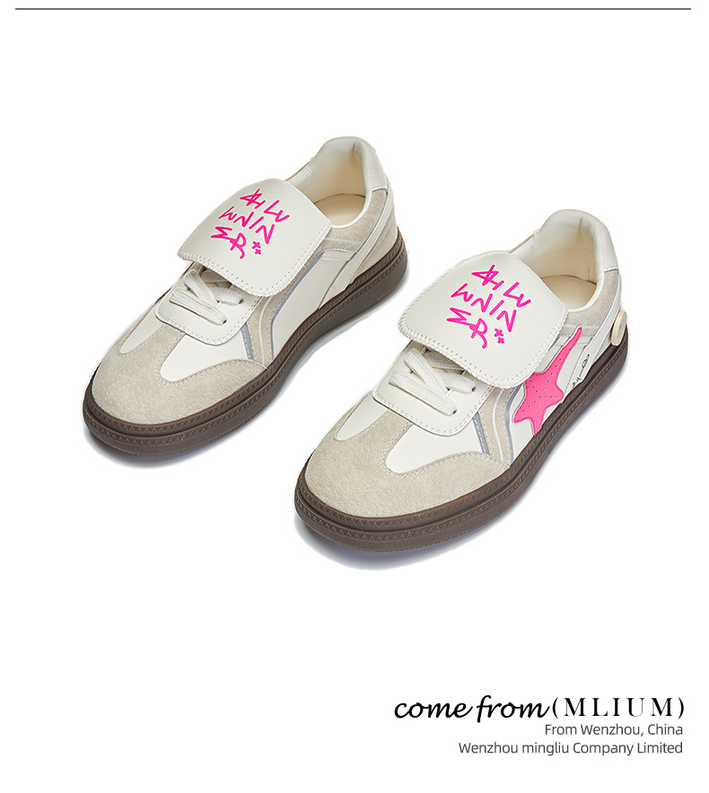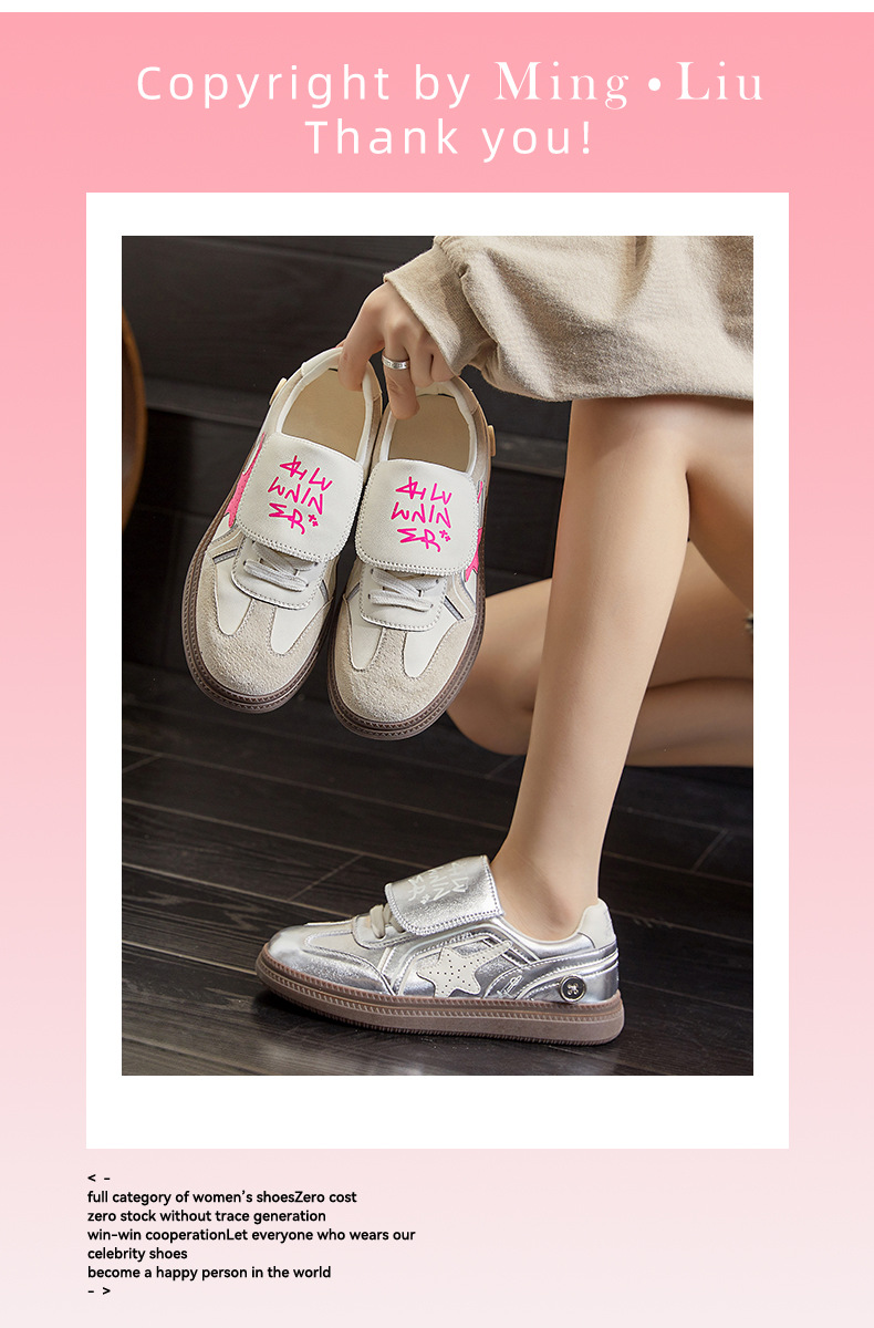 정품 가죽 운동화 2024 봄과 여름 새로운 평면 독일 훈련 신발 여성 플립 화이트 신발 여성 스포츠 스타 캐주얼 여성 신발스토어 가기