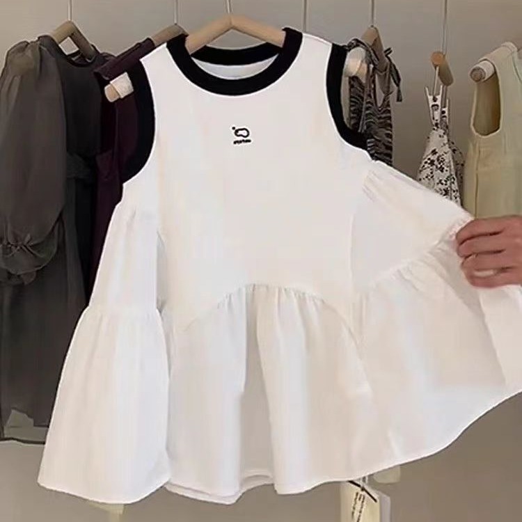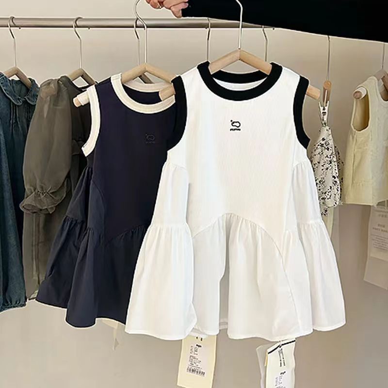 한국 아동복 소녀 기질 조끼 치마 2024 여름 새로운 어린 소녀 높은 감각 바느질 민소매 원피스스토어 가기