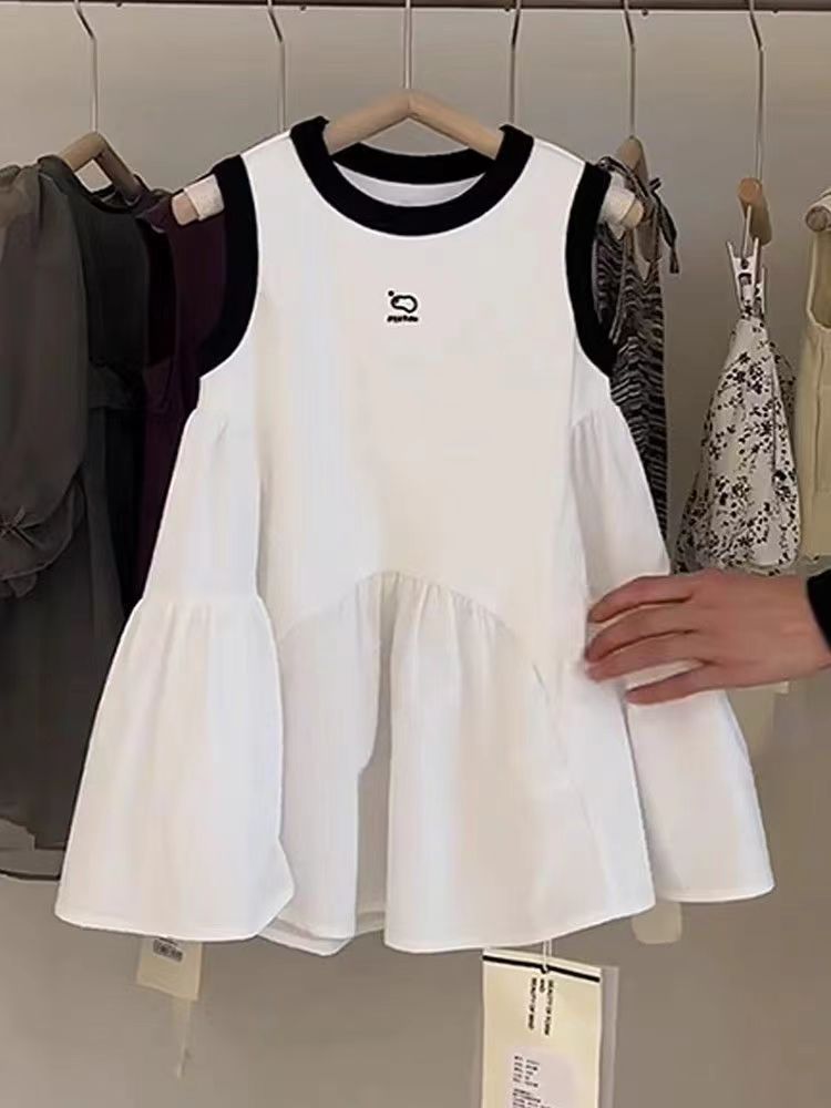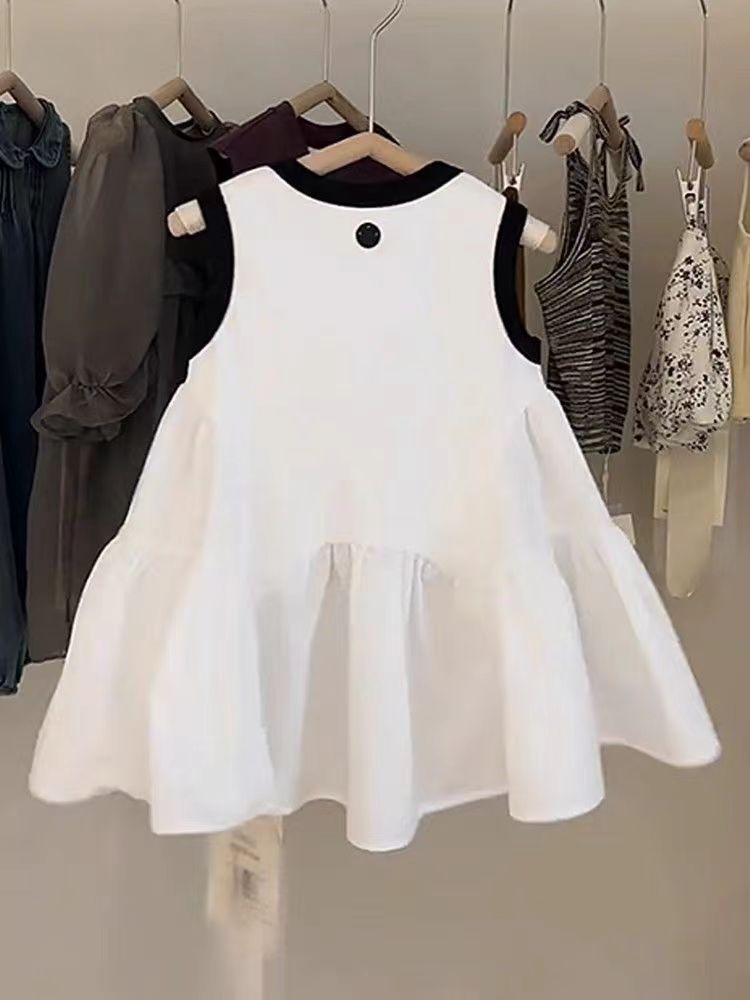 한국 아동복 소녀 기질 조끼 치마 2024 여름 새로운 어린 소녀 높은 감각 바느질 민소매 원피스