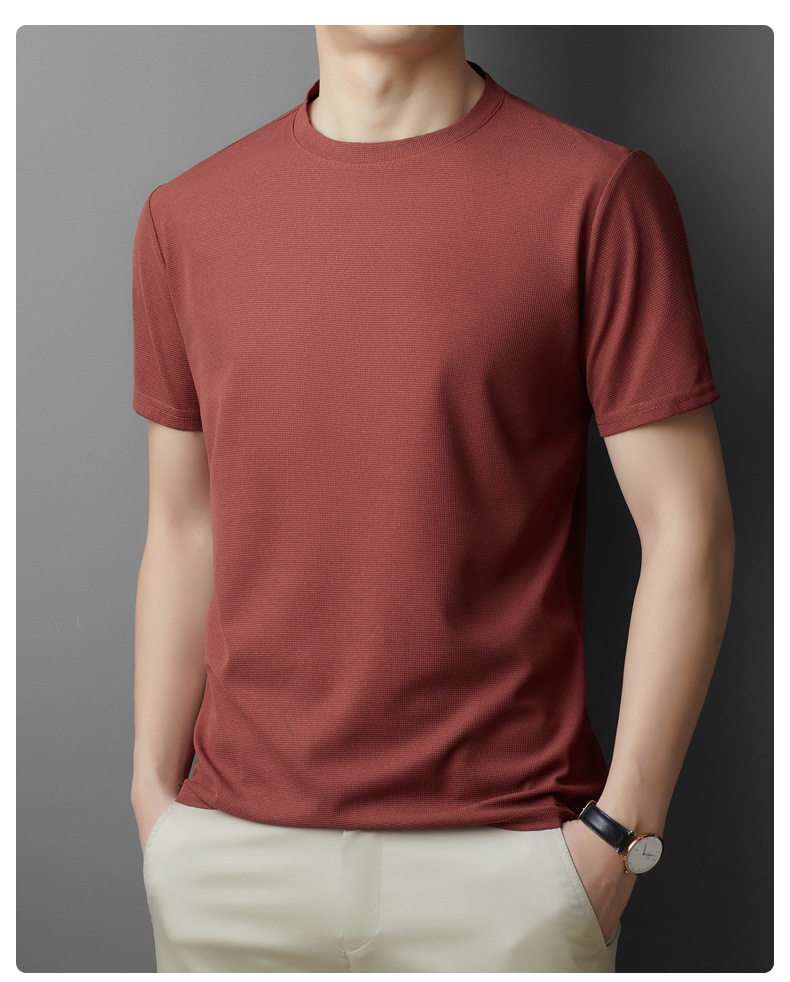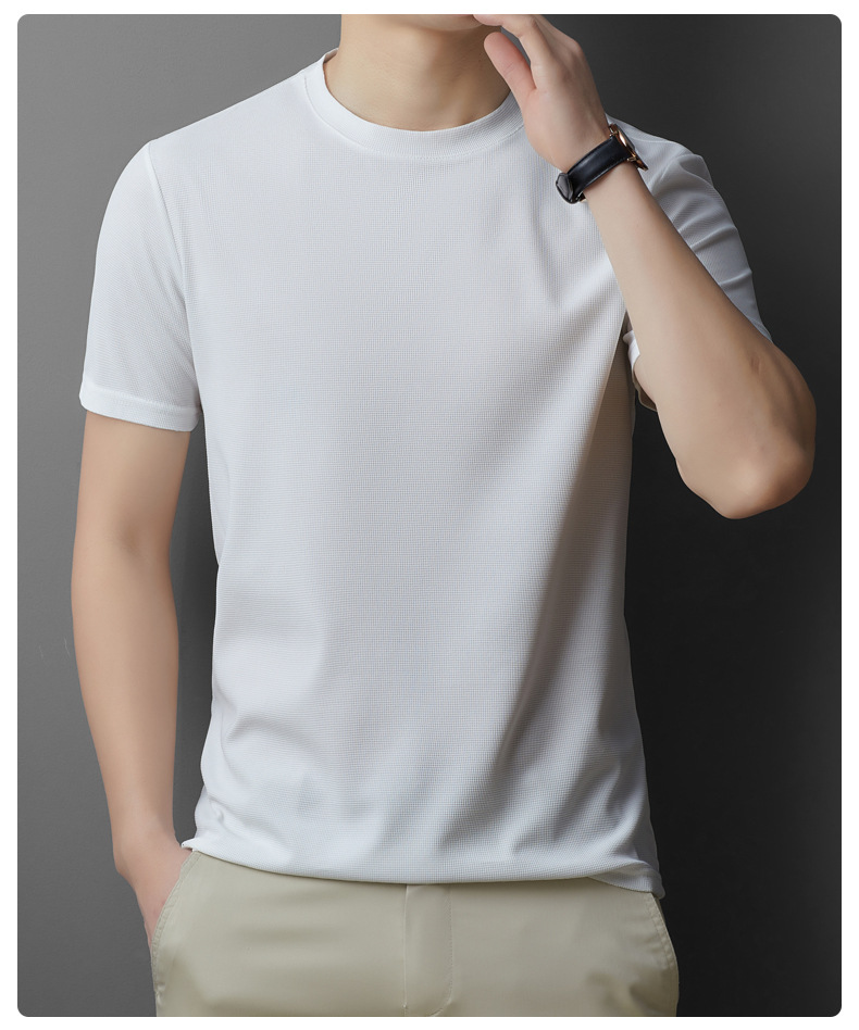남자 반팔 티셔츠 여름 새로운 솔리드 컬러 통기성 라운드 넥 반팔 남자 청소년 캐주얼 패션 올 매치 티셔츠