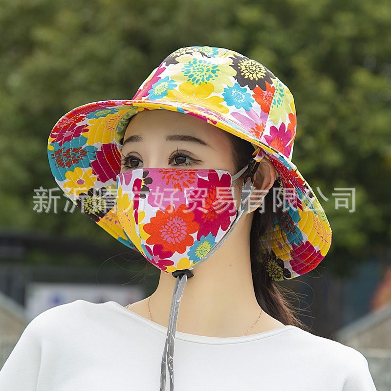 폭발 햇빛 햇살 모자 마스크 2 조각 야외 작업 차 따기 모자 얼굴 덮고있는 목 보호 어부 모자