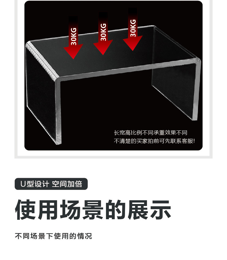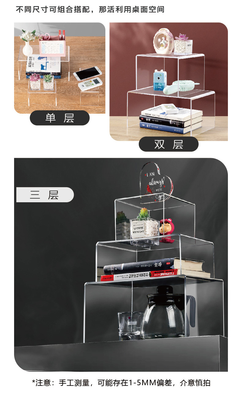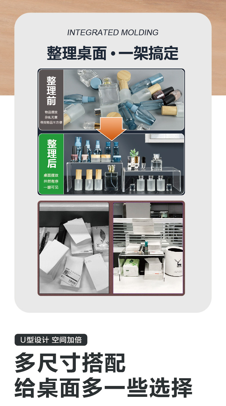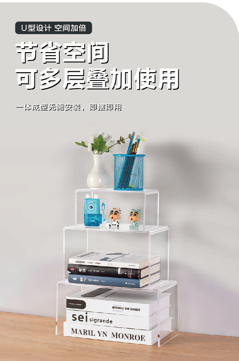 아크릴 U 자형 스토리지 랙 데스크탑 레이어드 높이 랙 투명 디스플레이 랙 핸드 헬드 스토리지 신발 랙
