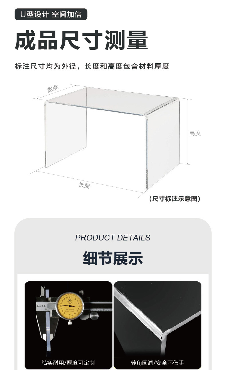 아크릴 U 자형 스토리지 랙 데스크탑 레이어드 높이 랙 투명 디스플레이 랙 핸드 헬드 스토리지 신발 랙스토어 가기