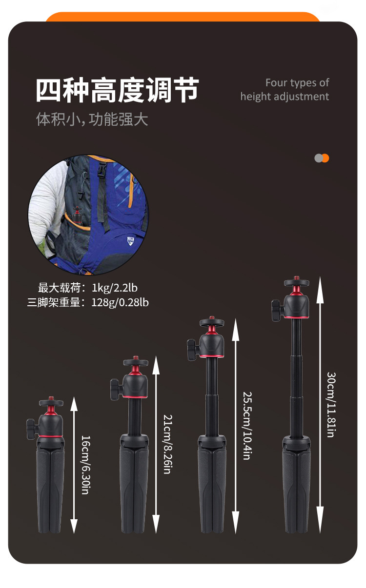 데스크탑 미니 삼각대 스탠드 비디오 촬영 휴대용 개폐식 연장 막대 사진 카메라 마이크로 단일 휴대 전화