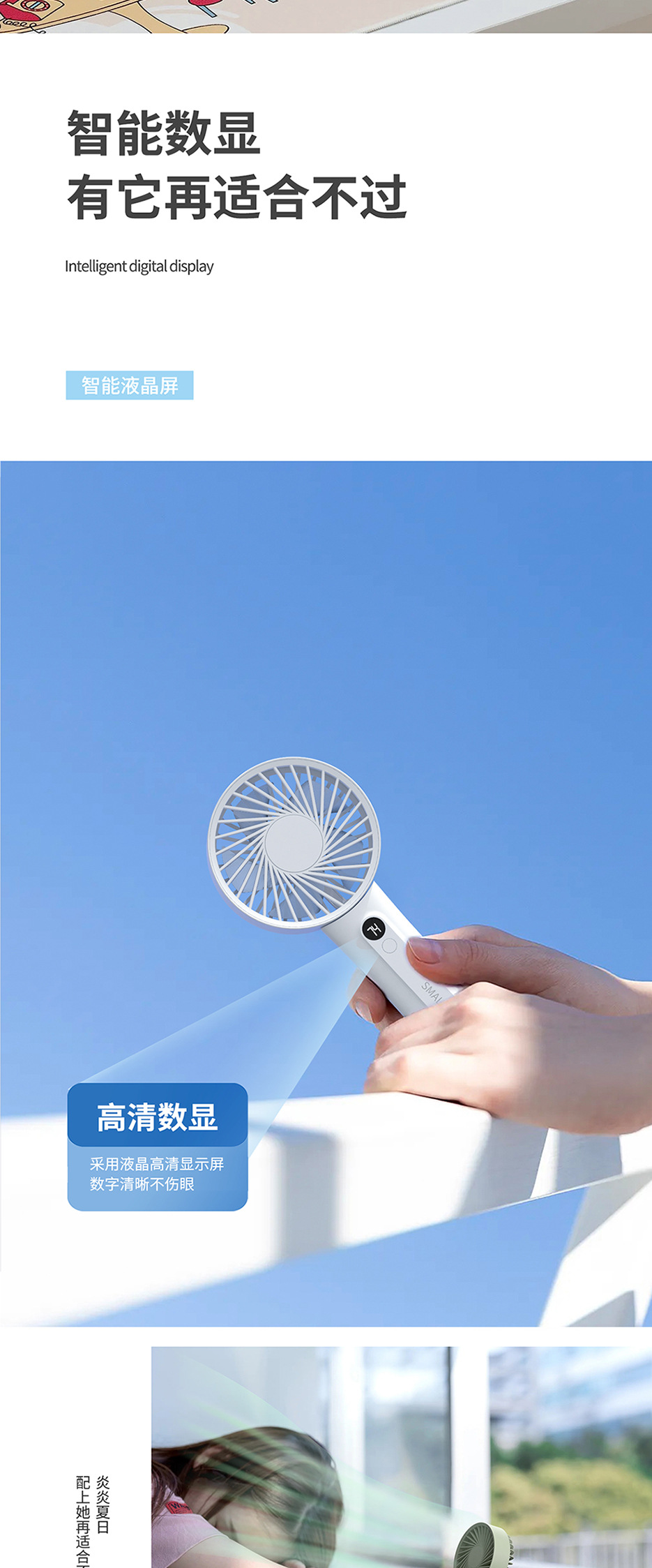 Su Mi Wang Chen 휴대용 팬 작고 가벼운 야외 휴대용 조용한 디지털 USB 충전 미니 팬스토어 가기