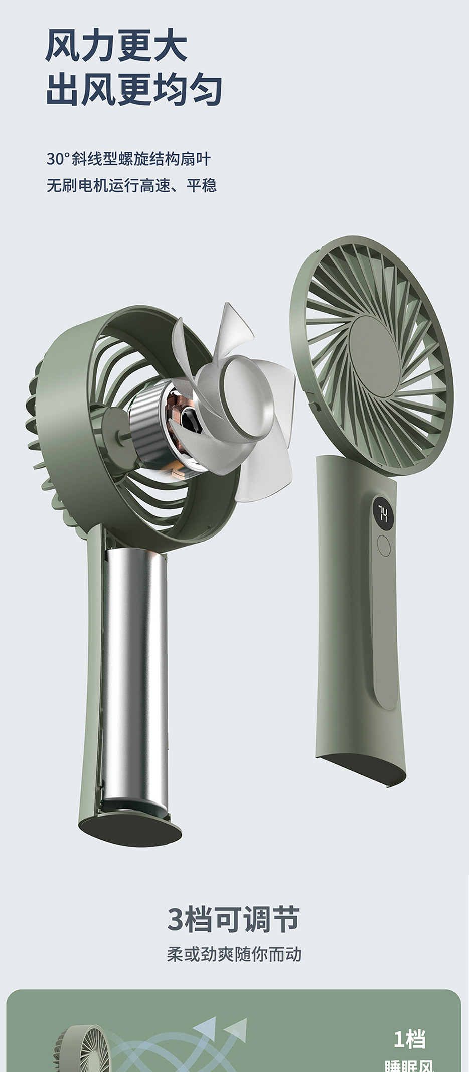 Su Mi Wang Chen 휴대용 팬 작고 가벼운 야외 휴대용 조용한 디지털 USB 충전 미니 팬