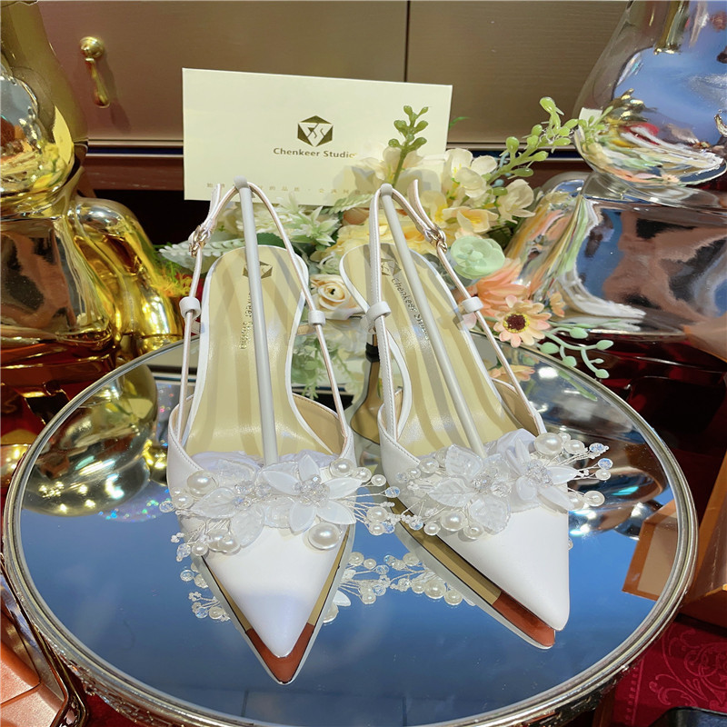 프랑스 웨딩 신발 Xiuhe 웨딩 원피스 Baotou 신부 신발 피곤하지 않은 발 2024 새로운 흰색 하이힐 스틸레토 힐
