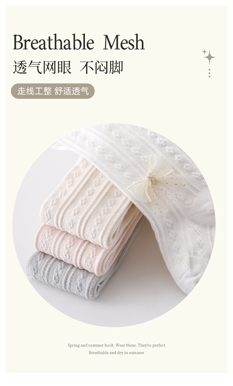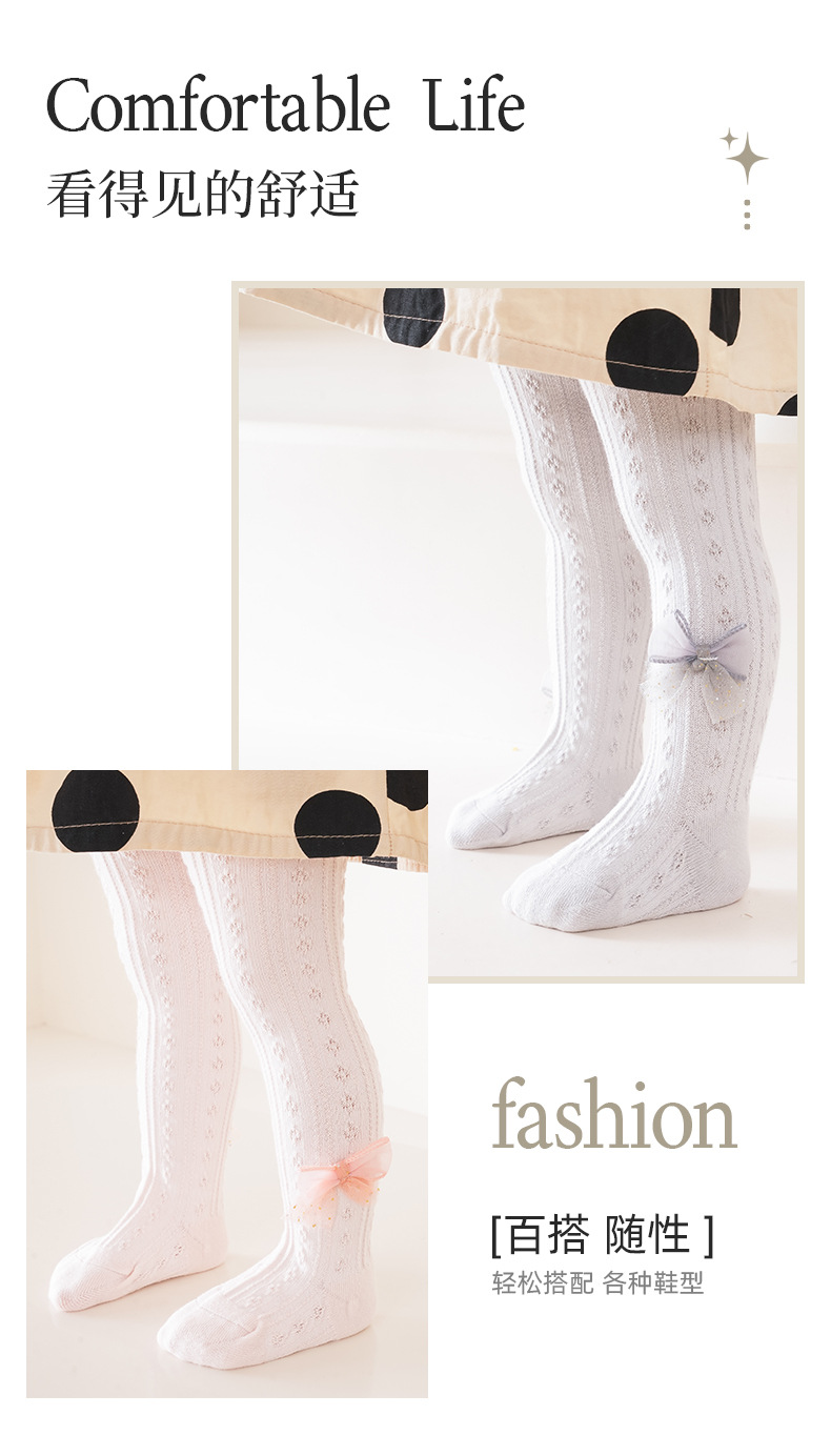아기의 큰 PP, 아기의 여름 싱글 보우 걸스 팬티 스타킹 화이트 어린이 메쉬 스타킹 안티 모기 양말