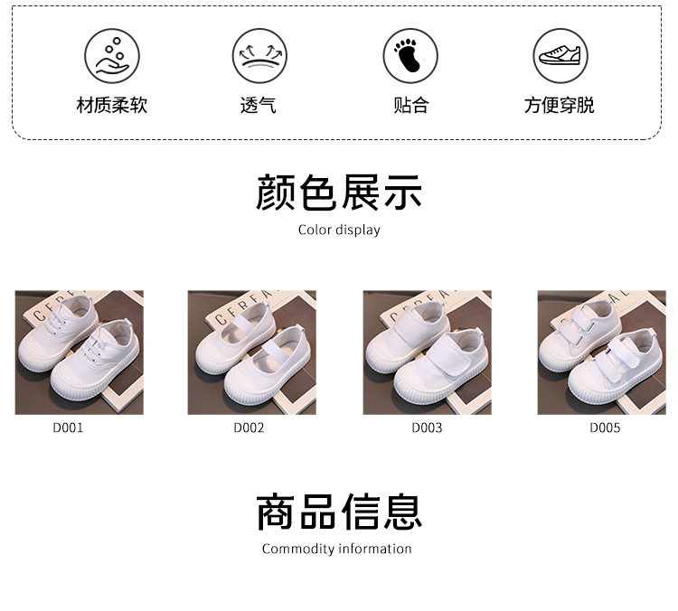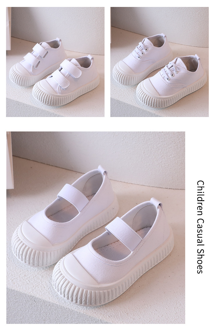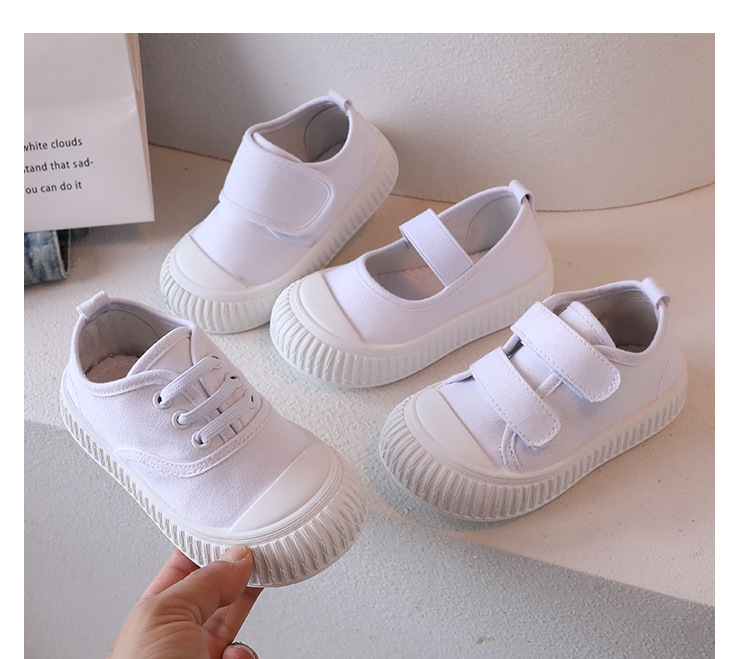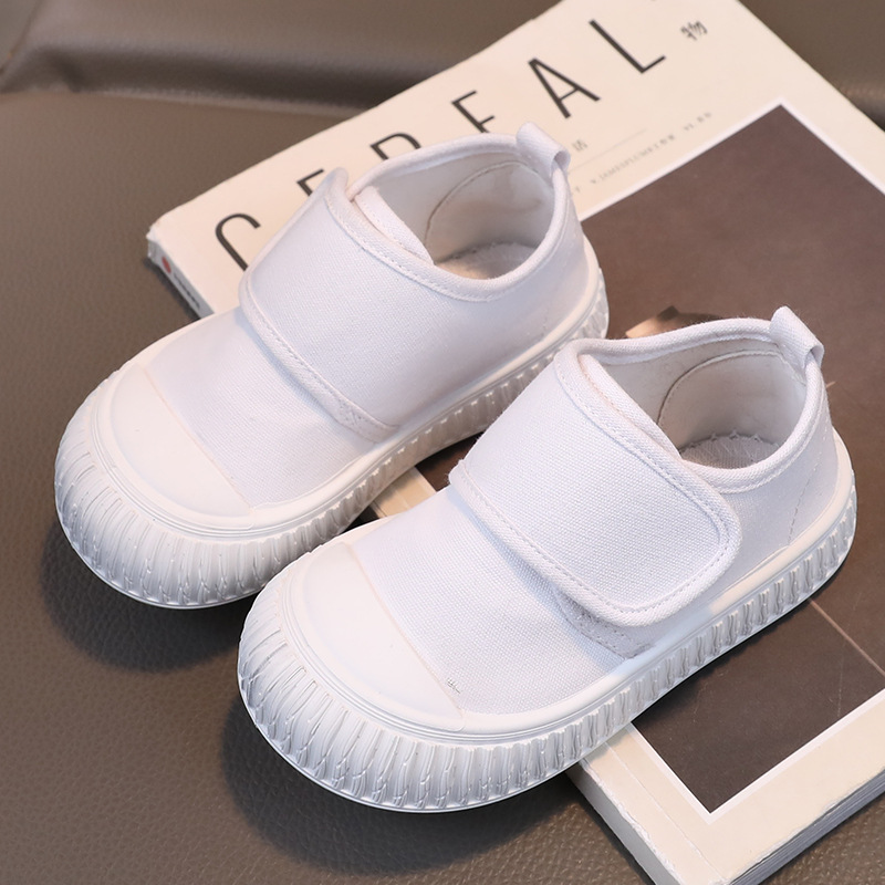 어린이 흰색 신발 소녀 흰 천 신발 소년 캔버스 신발 초등학교 학생 흰색 운동화 유치원 실내 운동화