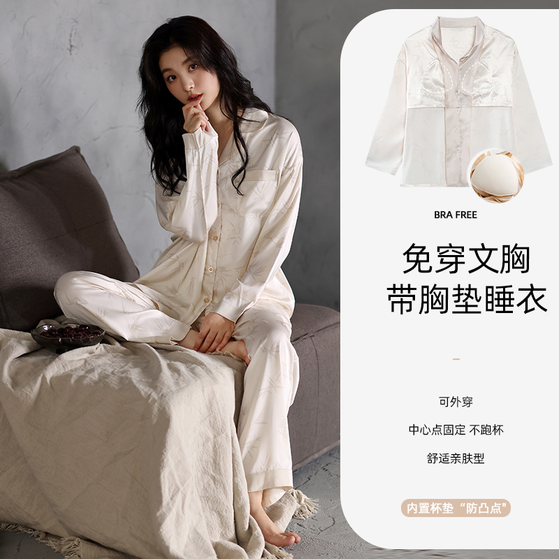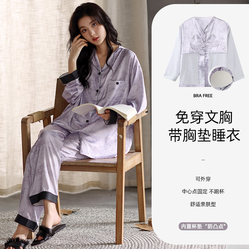 단색 간단한 잠옷 아이스 실크 여성의 여름 반팔 반바지 가슴 패드 옷깃 느슨한 카디건 세트 홈 얇은