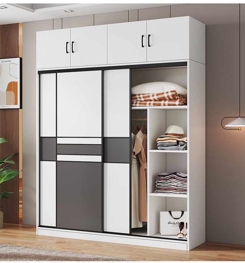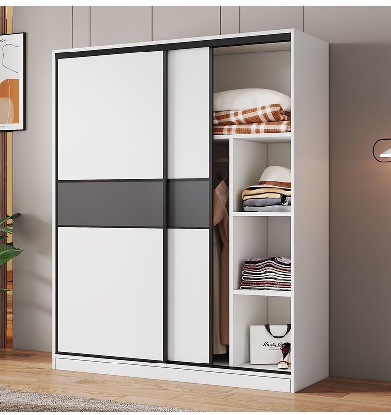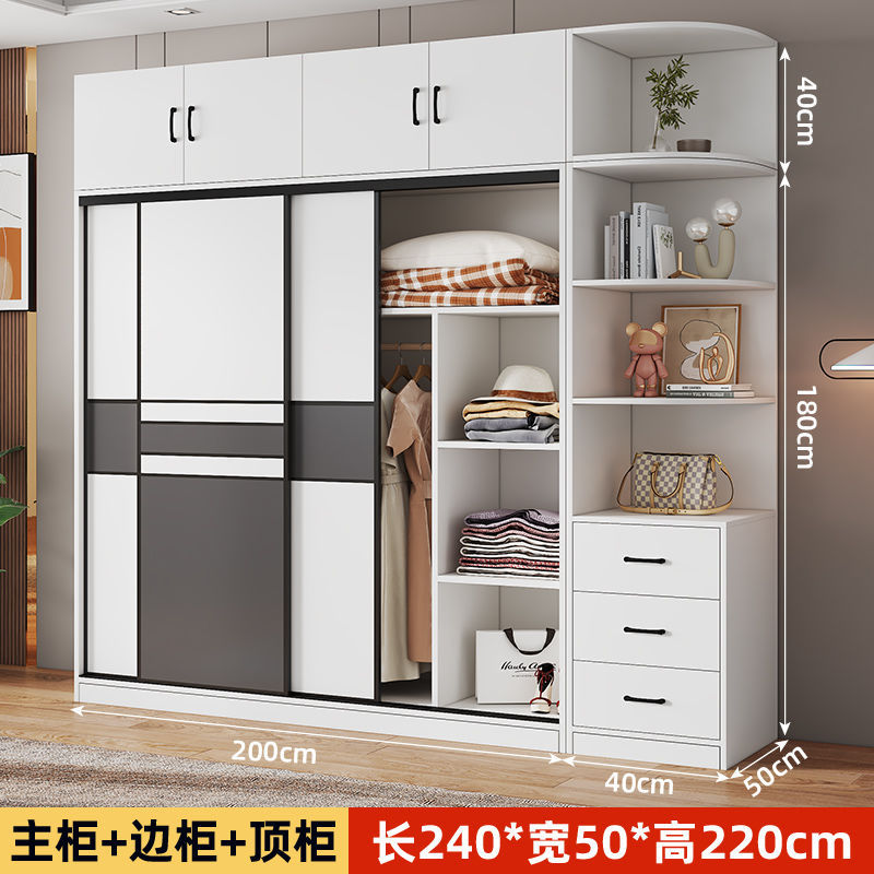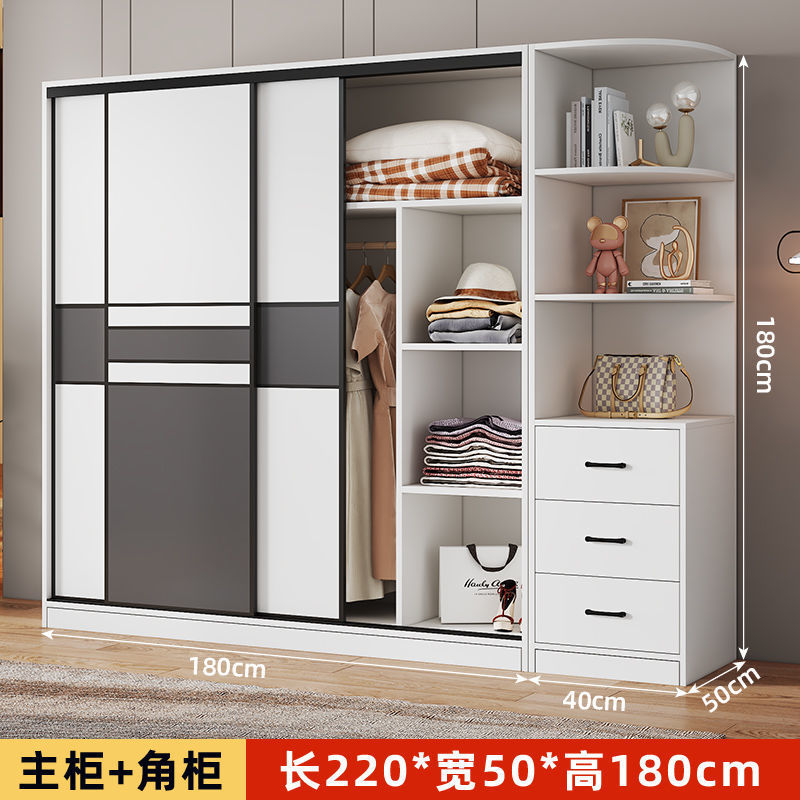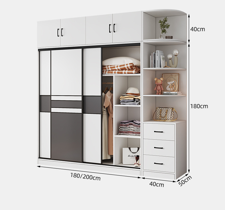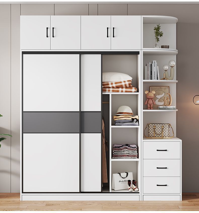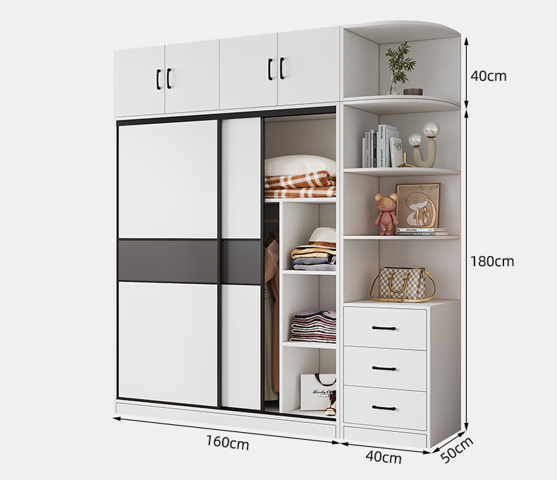 옷장 가정용 침실 임대 방 슬라이딩 도어 작은 아파트 어린이 나무 캐비닛 간단한 대형 옷장