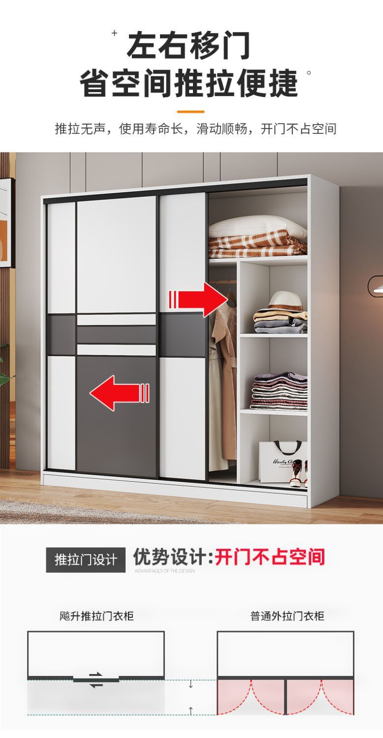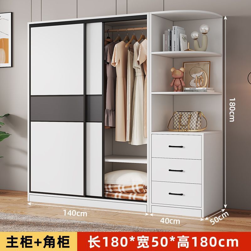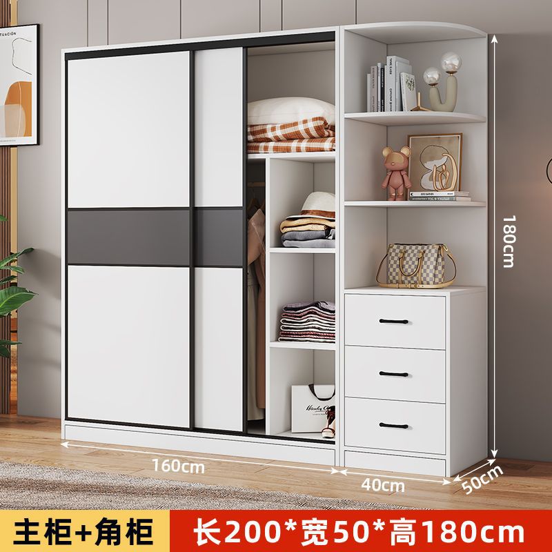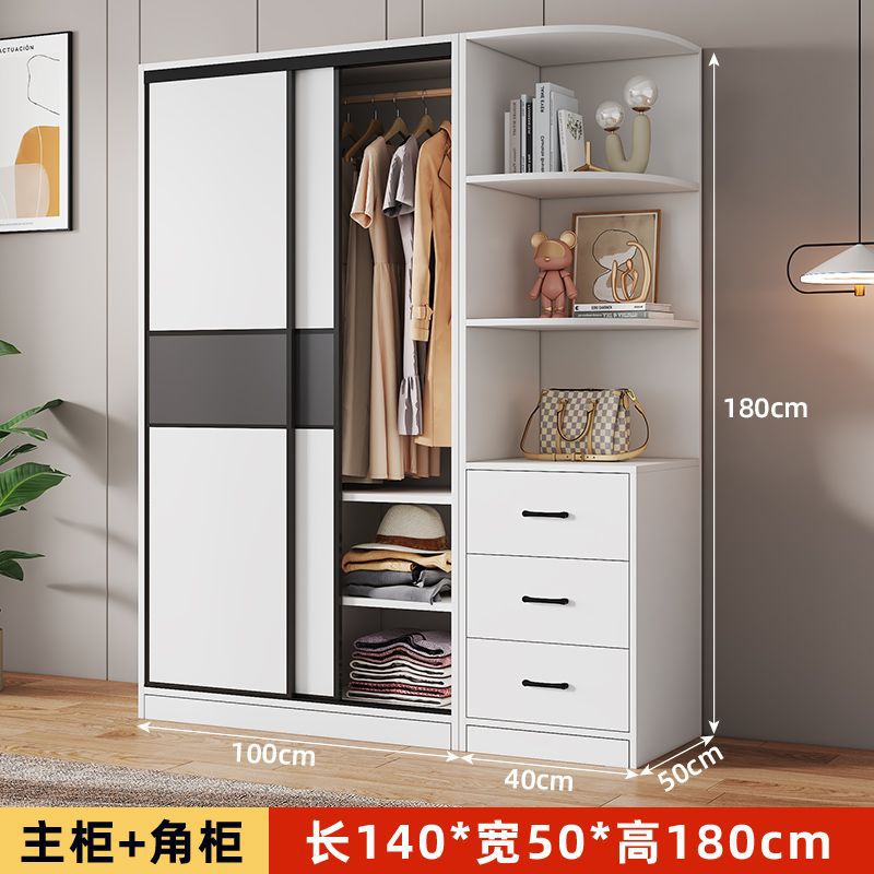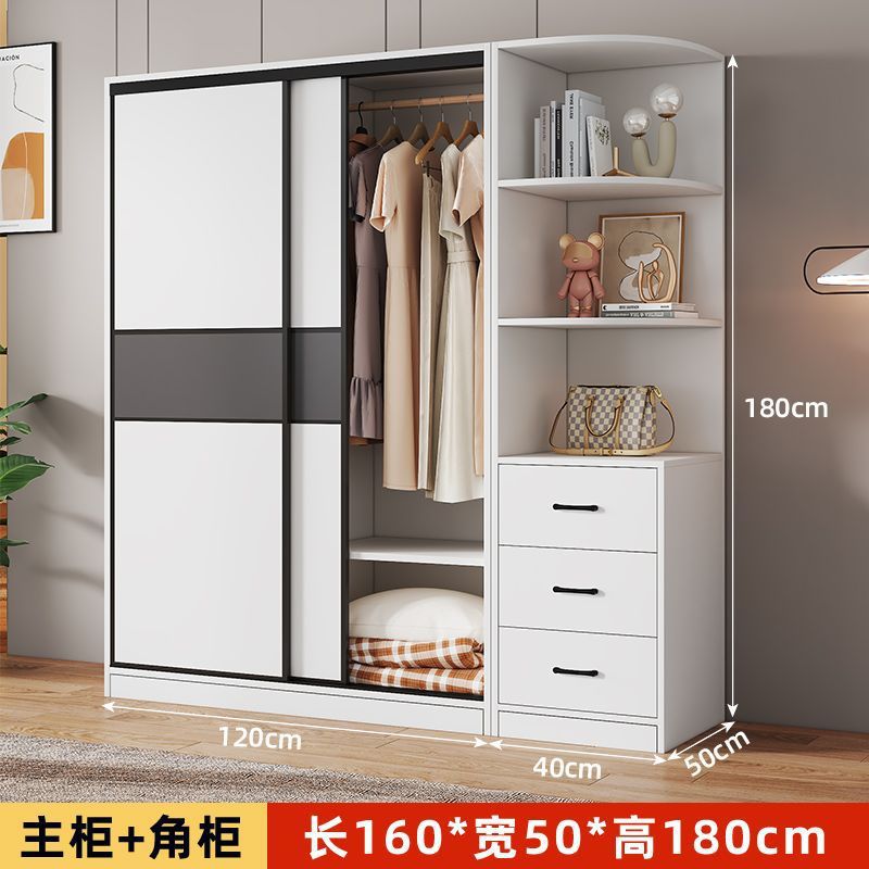 옷장 가정용 침실 임대 방 슬라이딩 도어 작은 아파트 어린이 나무 캐비닛 간단한 대형 옷장스토어 가기