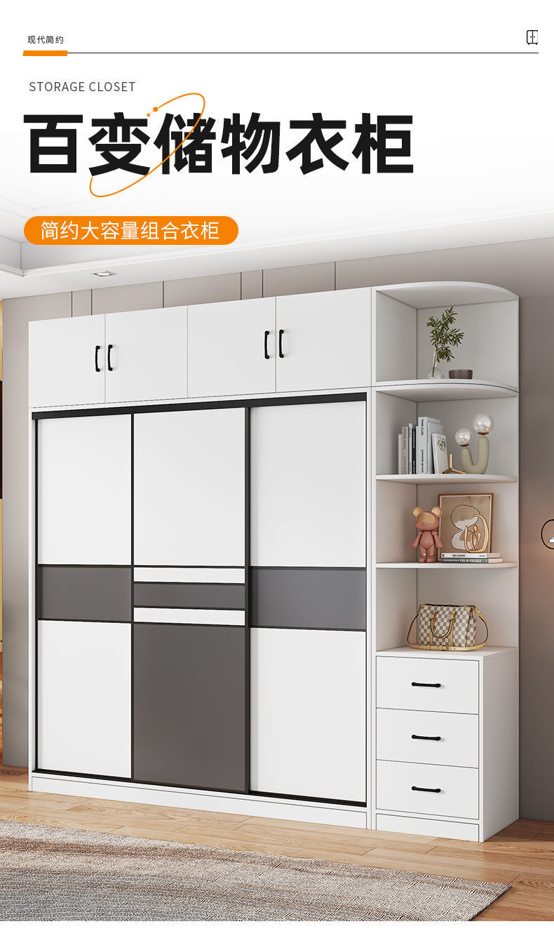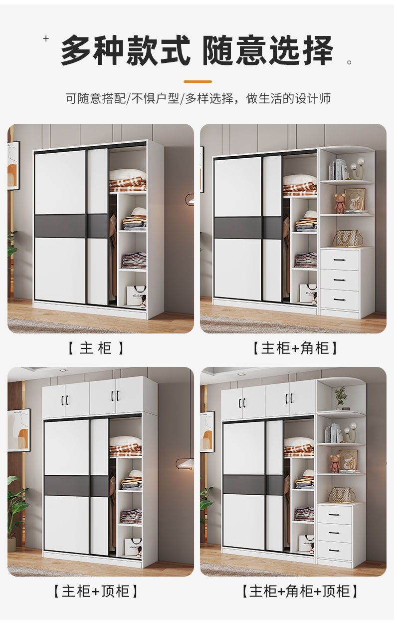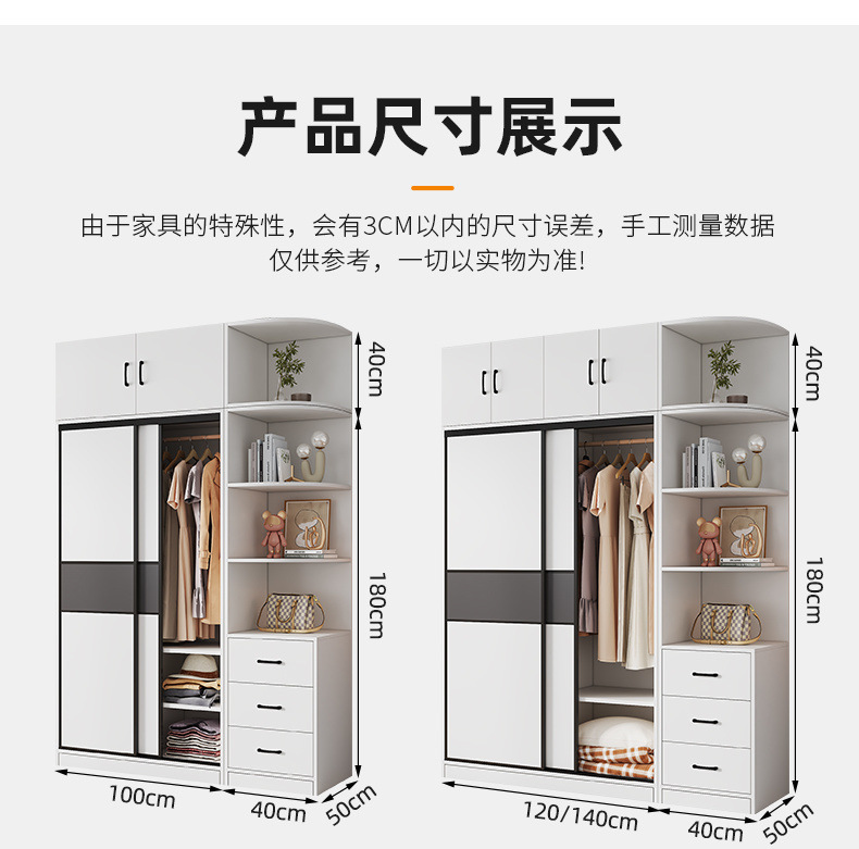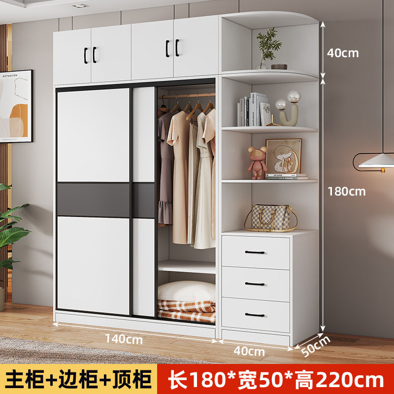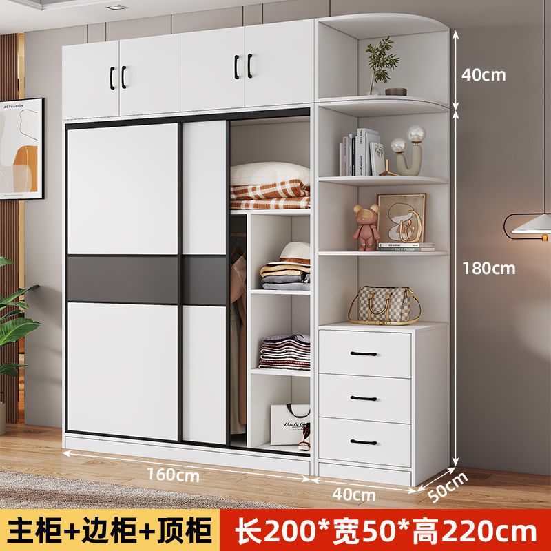 옷장 가정용 침실 임대 방 슬라이딩 도어 작은 아파트 어린이 나무 캐비닛 간단한 대형 옷장스토어 가기